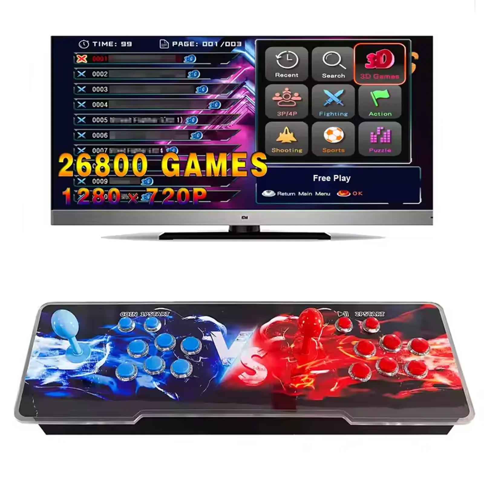 26800 em 1 caixa pandora console de arcade 2025 3d retro arcade game console gabinete bartop 8 vias joysticks botões de pressão