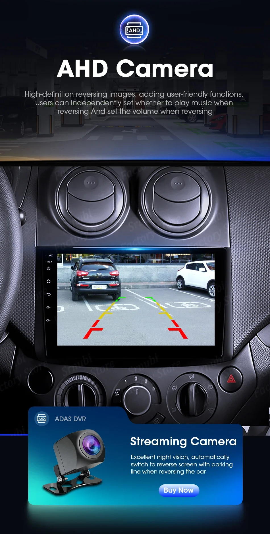 Suporta câmera AHD, tela de ré de alta definição, adiciona funções humanizadas e defina o volume ao inverter.