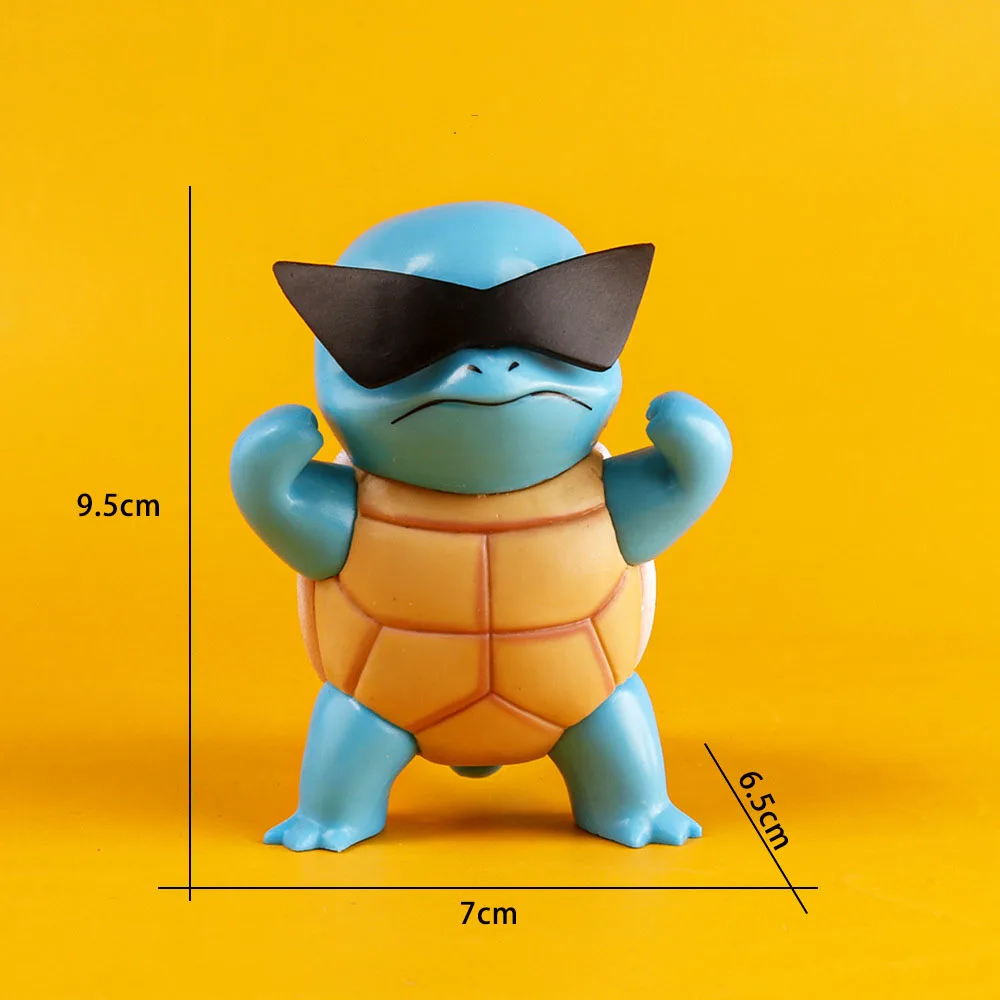 - > 3 estilos 9cm pokemon squirtle usar óculos de sol figura de ação pvc gk modelo colecionável escritório decoração de mesa crianças presente de aniversário