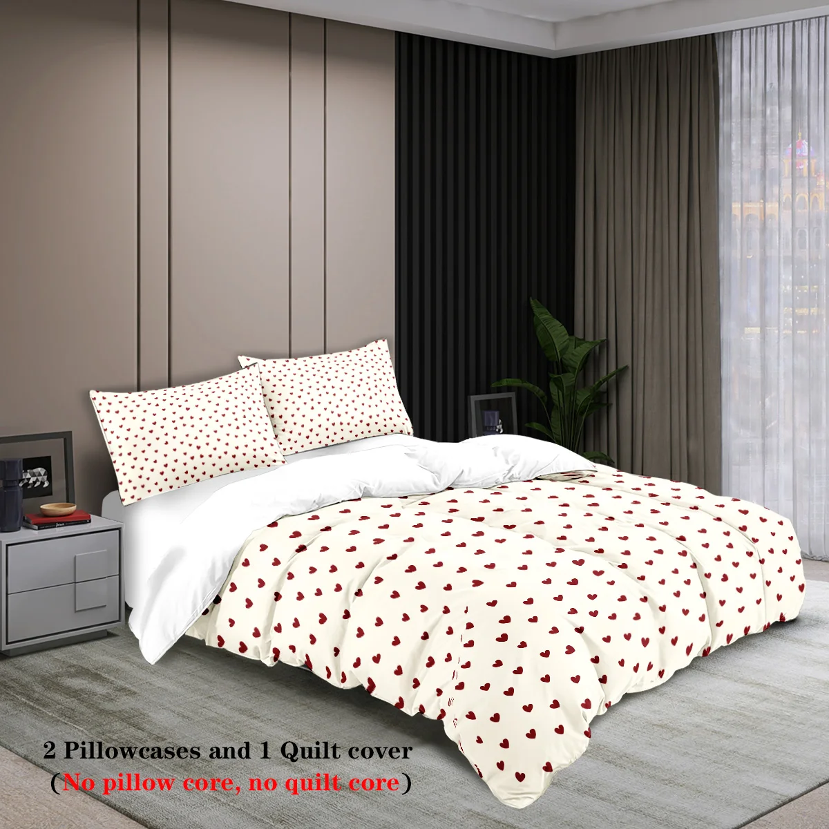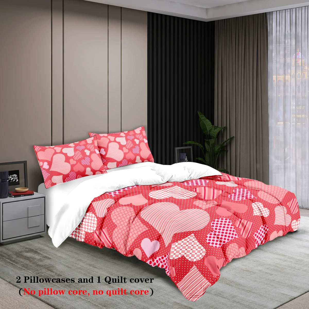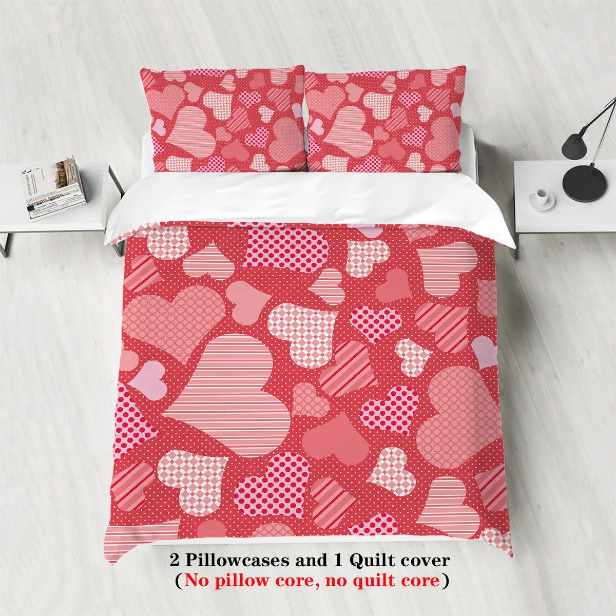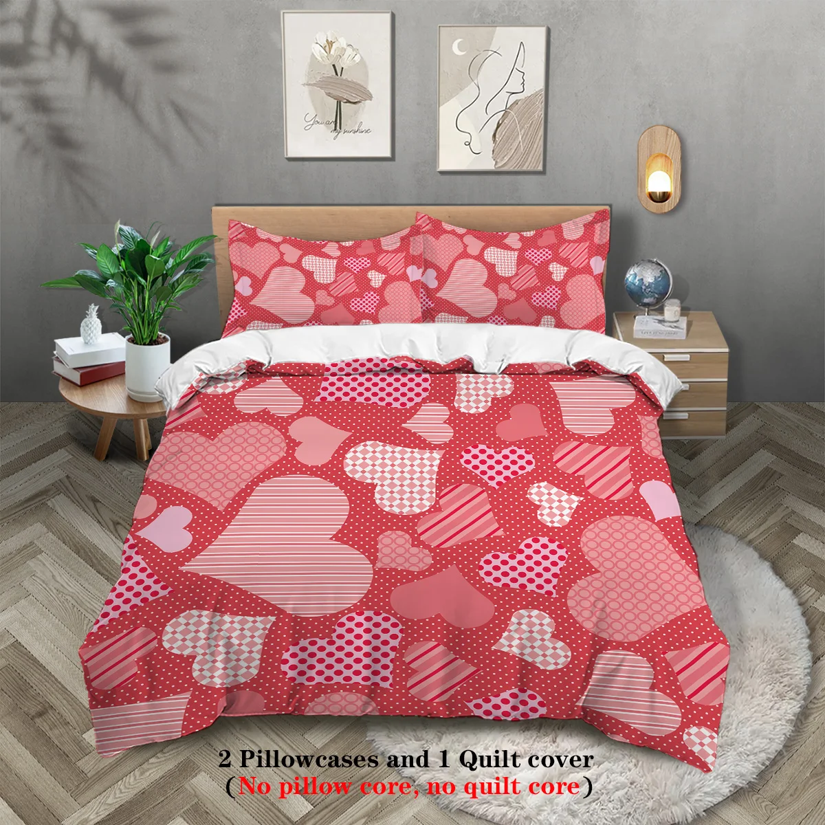 3 pçs em forma de coração vermelho amor padrão impresso conjunto capa de edredão, rainha, rei, cama de casal, para quarto, hotel, presente especial para meninas