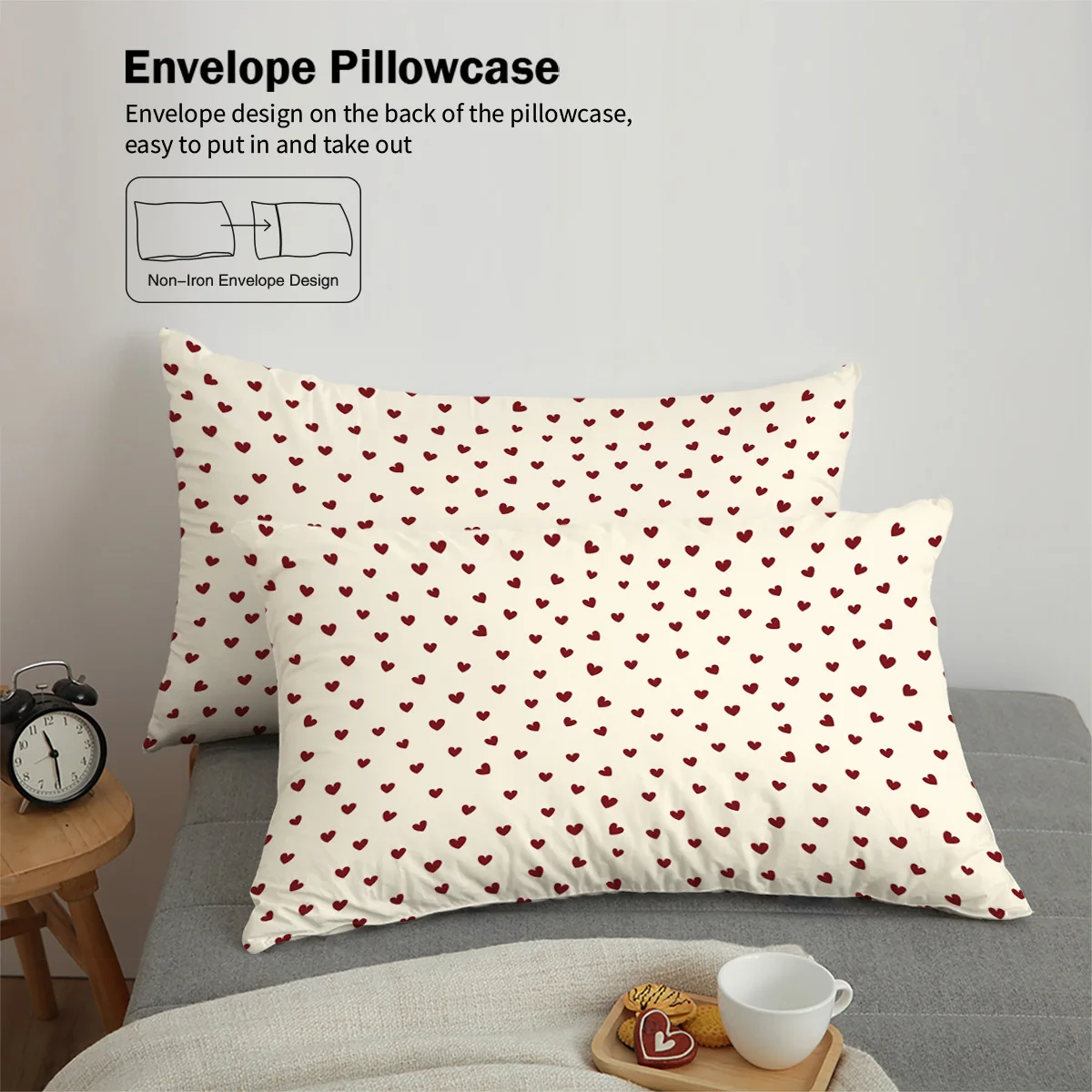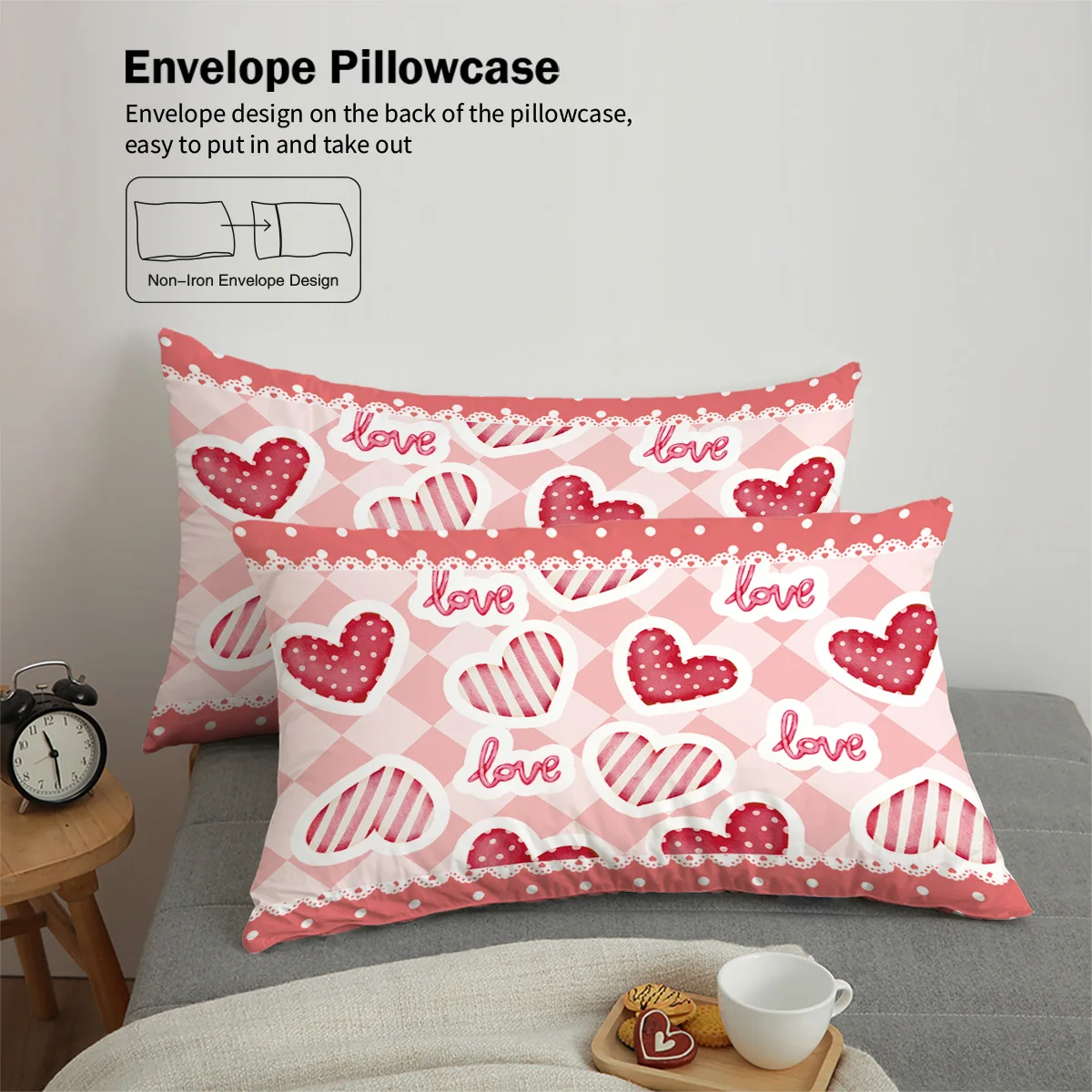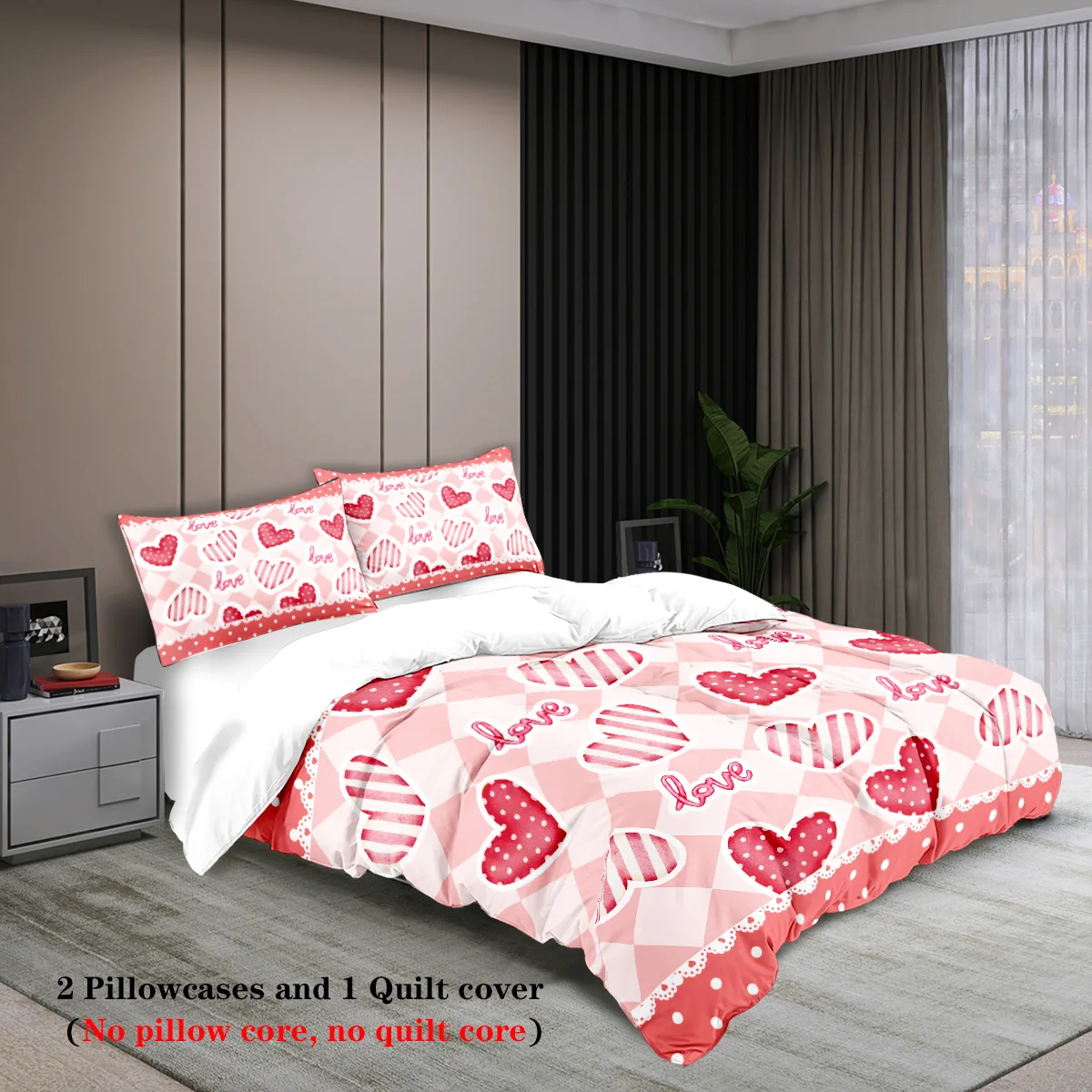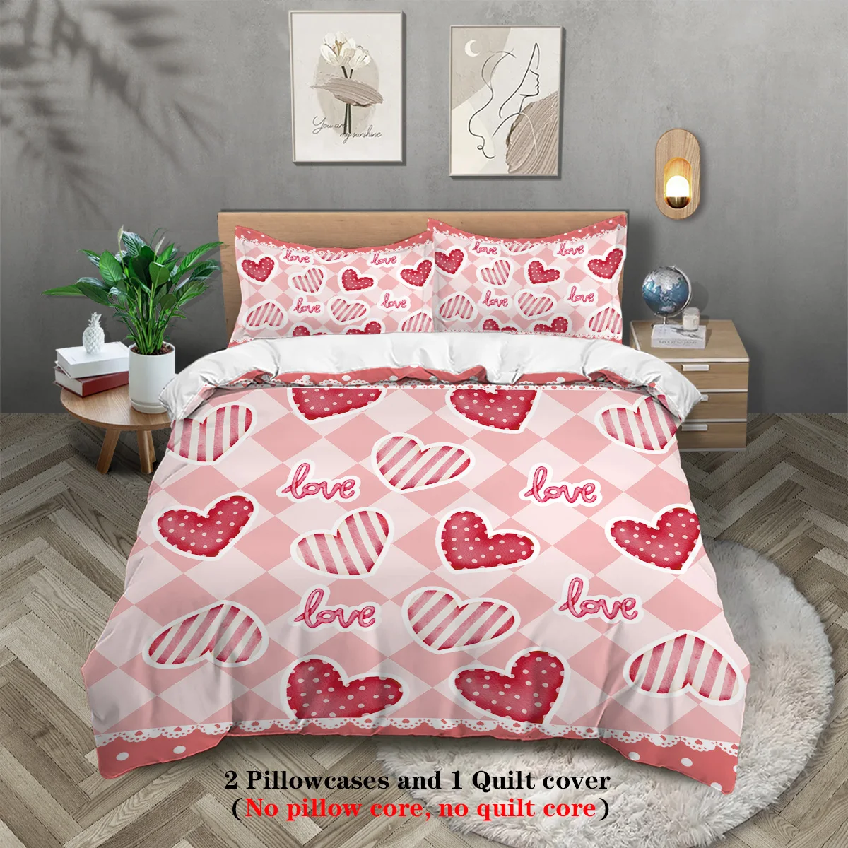 3 pçs em forma de coração vermelho amor padrão impresso conjunto capa de edredão, rainha, rei, cama de casal, para quarto, hotel, presente especial para meninas