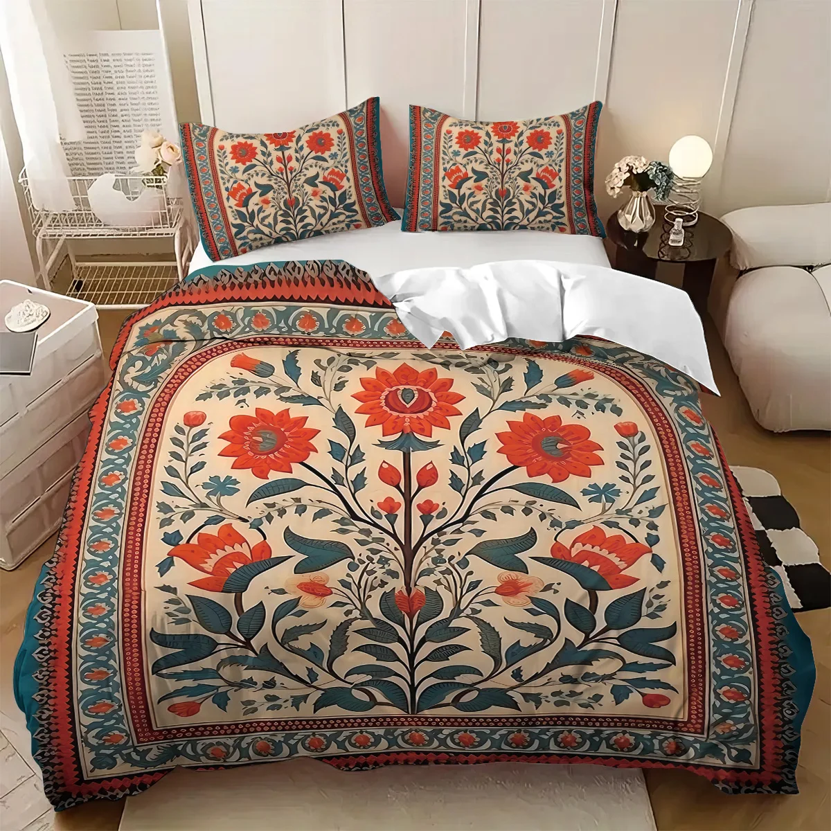 3 pçs estilo boêmio padrão impresso conjunto de capa de edredão, 1 capa de edredão + 2 fronhas, sem núcleo, para quarto, sala de hóspedes, hotel