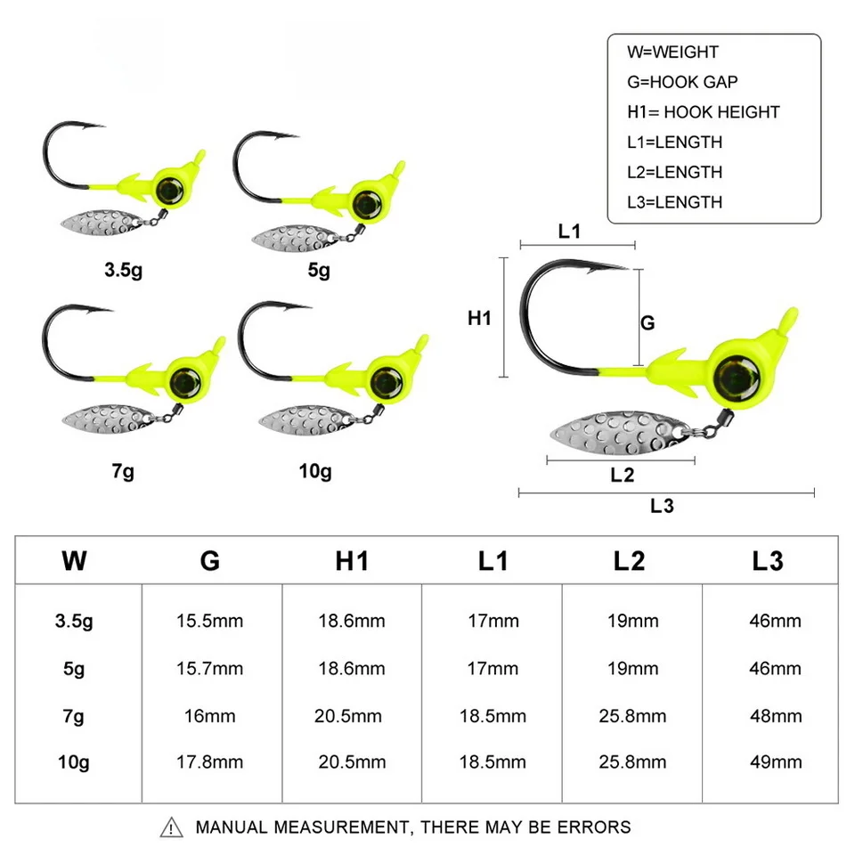 3 pçs gabarito cabeça gancho 3.5g 5g 7g 10g gancho de pesca rotativa lantejoulas gabarito isca colheres de metal iscas duras para minhoca macia equipamento de pesca