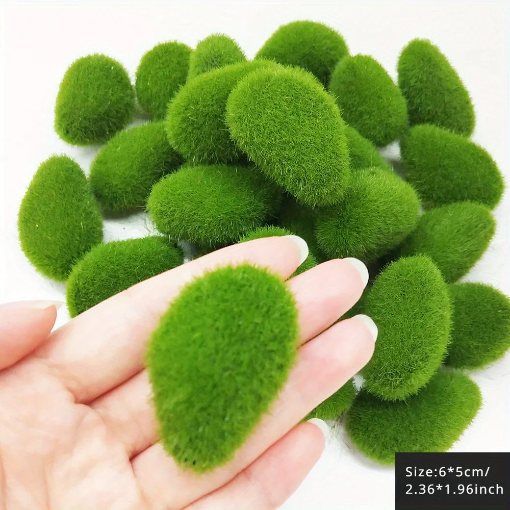 30 peças decoração de planta de simulação de pedra falsa diy verde criativo para jardim e artesanato pedras de musgo artificial