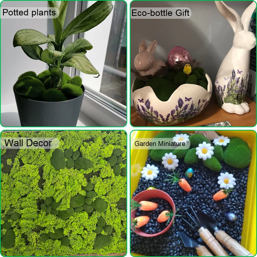 Bolas de musgo verde, decoração falsa de musgo para arranjos florais, jardins de fadas e artesanato.