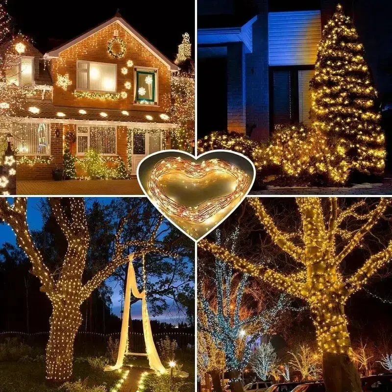 32m luzes de fadas solares ao ar livre rgb luzes da corda 300led 8 modos fio cobre luz para o natal jardim pátio árvore festa casamento