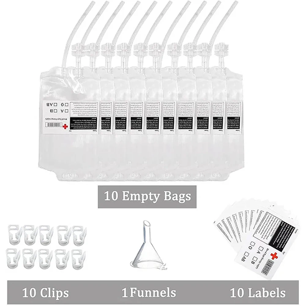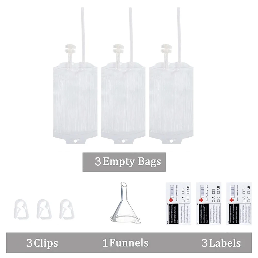 - > 350ml sacos de sangue de halloween para bebidas, sacos de sangue de vampiro, sacos de bebidas energéticas, sacos de sangue bebíveis, adereços assustadores de halloween