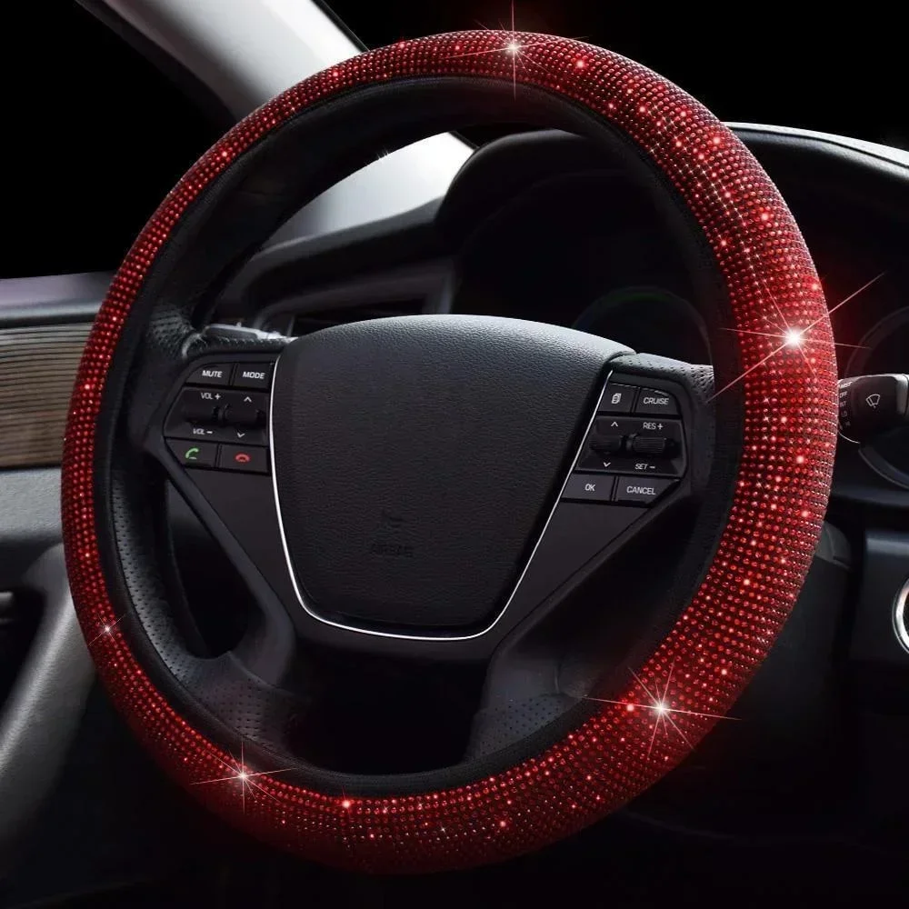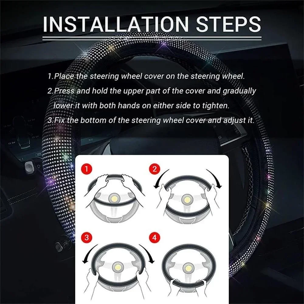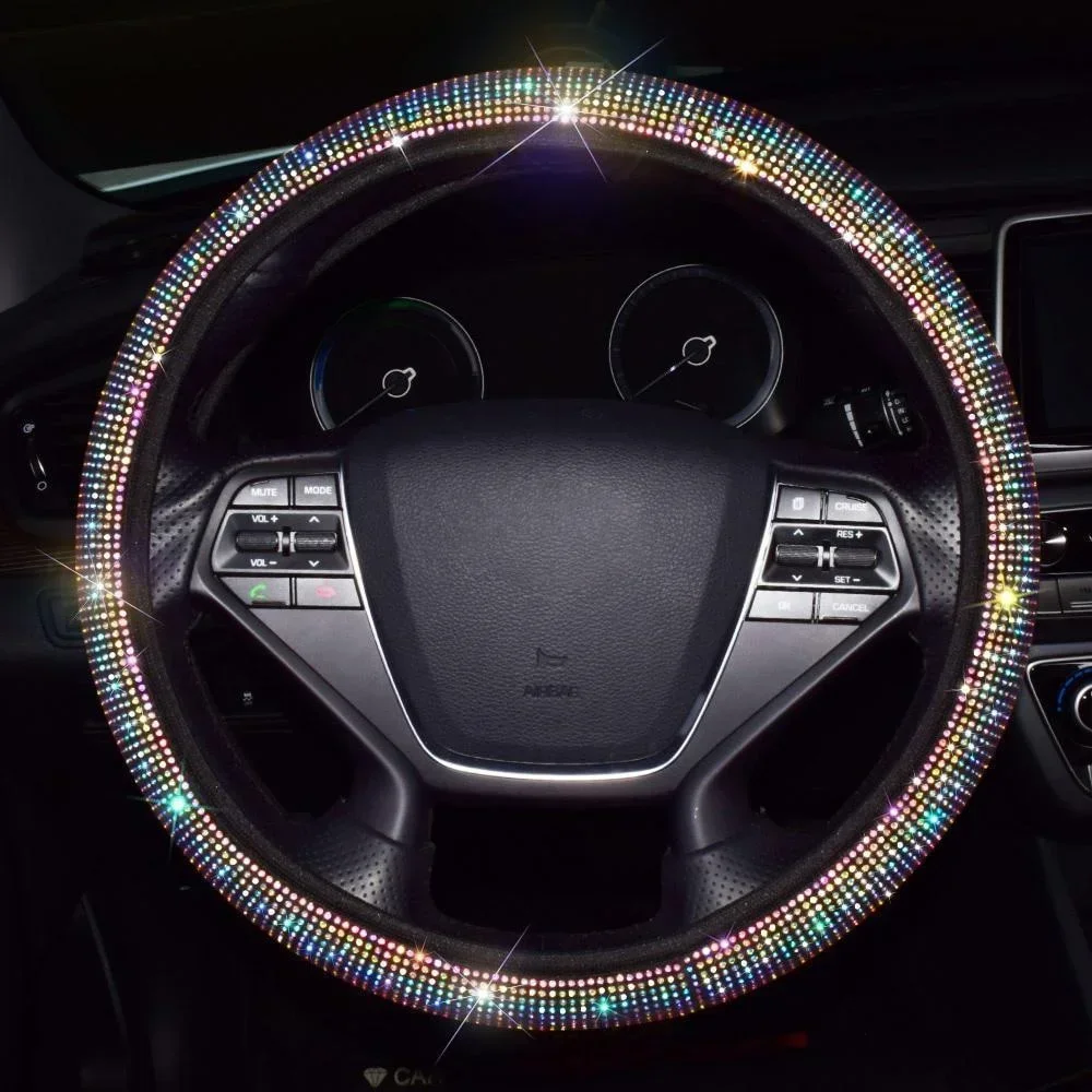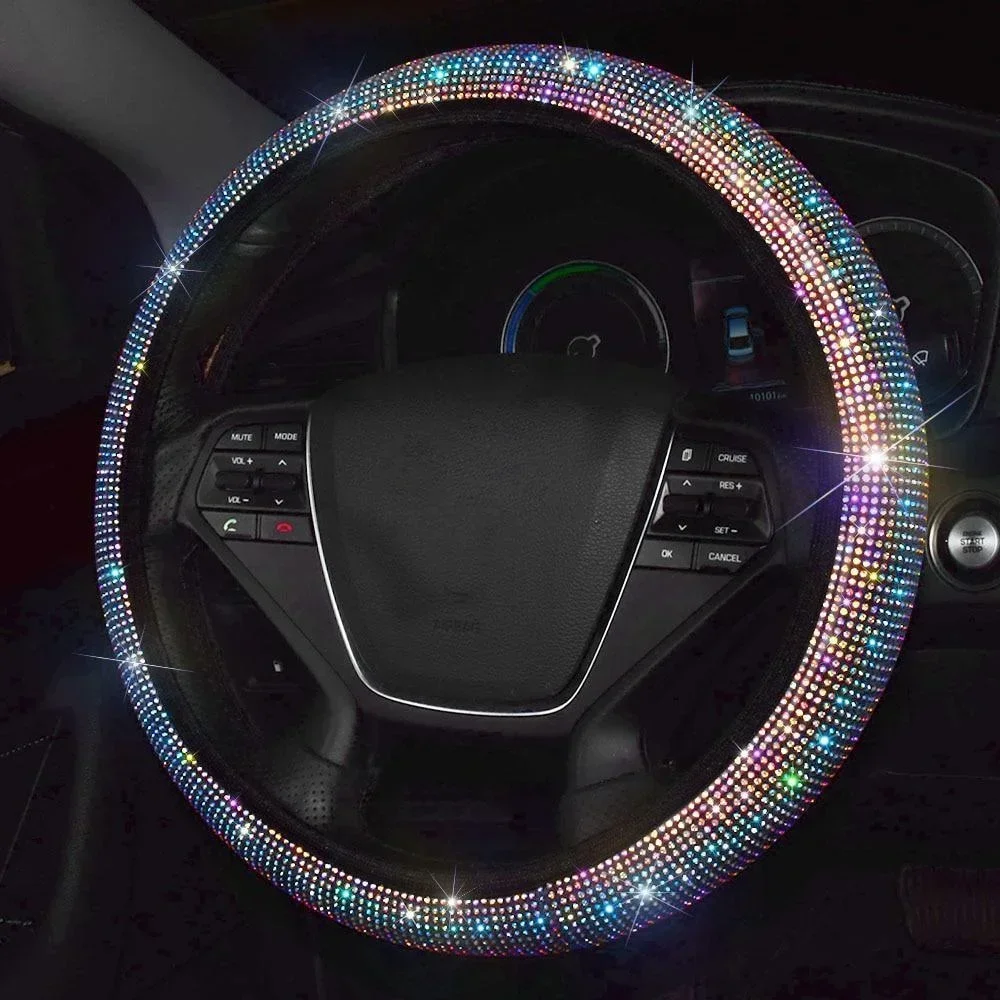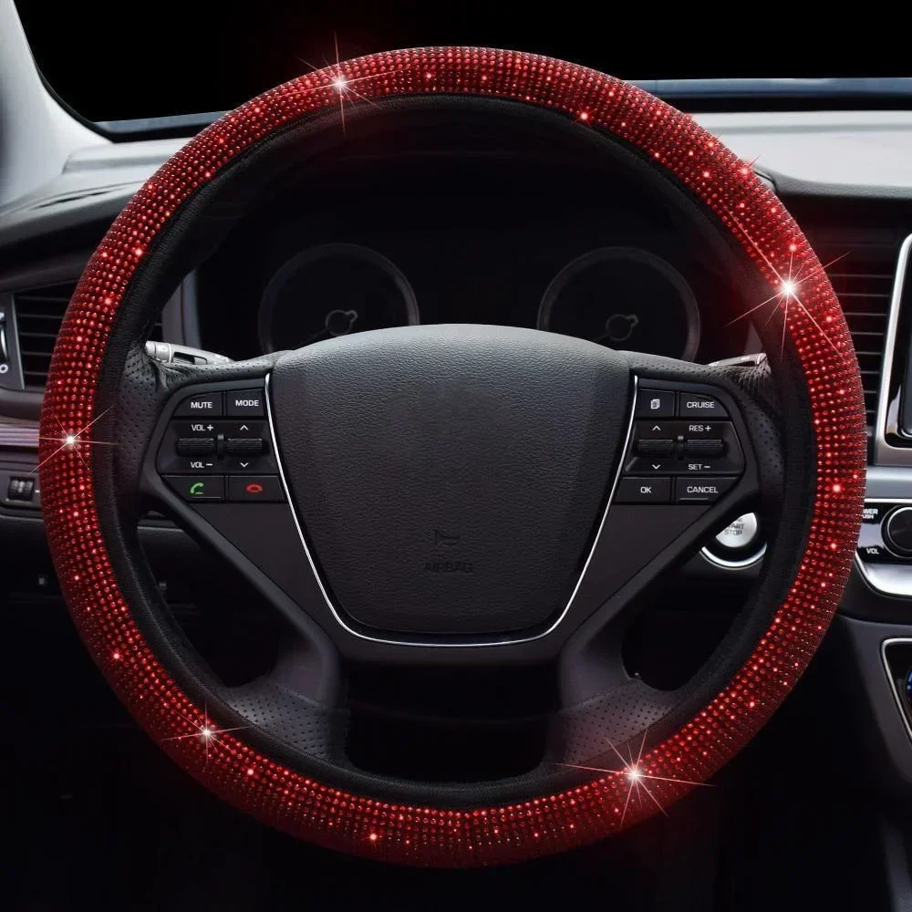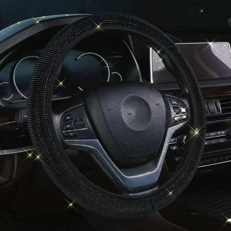 - > 37/38cm capa de volante do carro universal bling diamante strass elasticidade interior acessórios do carro para quatro estações