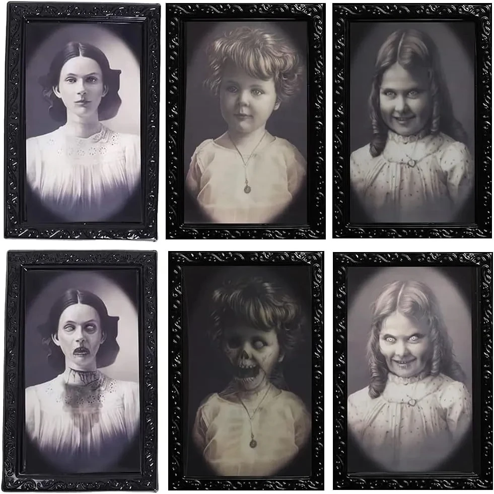 28*22CM 3D Mutável Rosto Fantasma Photo Frame Horror Retrato Retrato Retrato Halloween Festa de Horror Bar Casa Assombrada Decoração Props