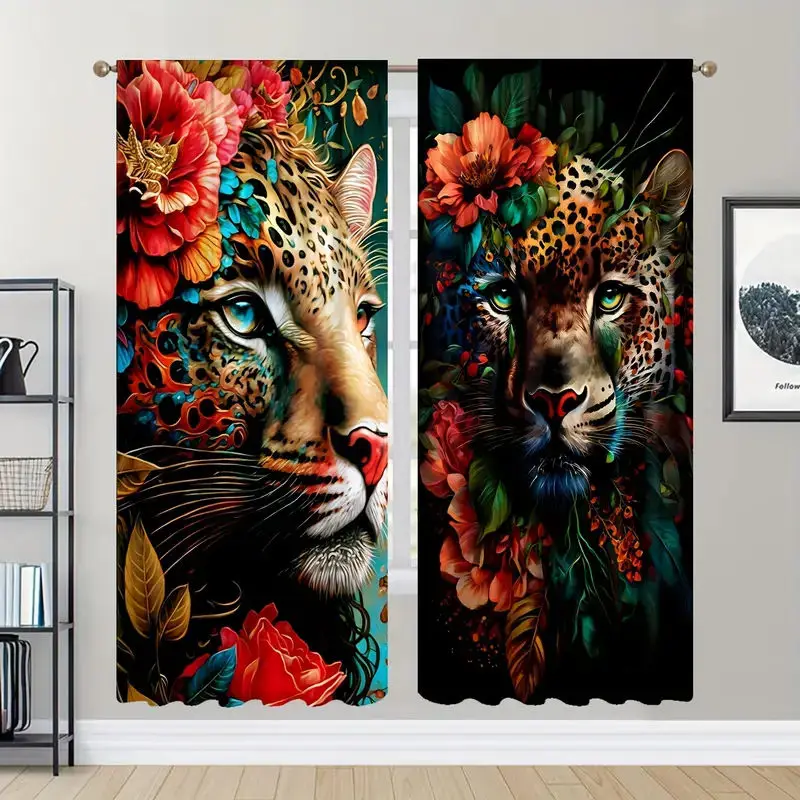 3D Printed Rose Shading Window Curtain para crianças, leão, tigre, lobo, animal, sala de estar, quarto, cozinha, porta, salão, decoração de casa
