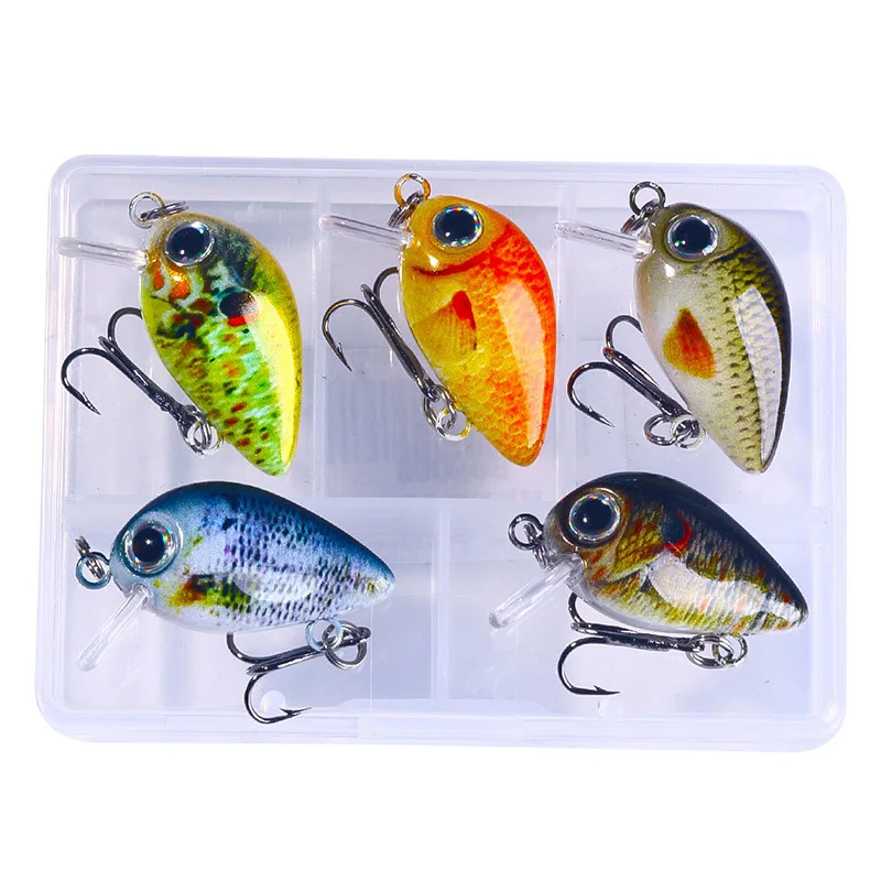 5 pçs/set mini kit crankbait 1.5g/3cm isca de pesca wobblers pequeno artificial flutuante isca dura equipamento de pesca com caixa pesca