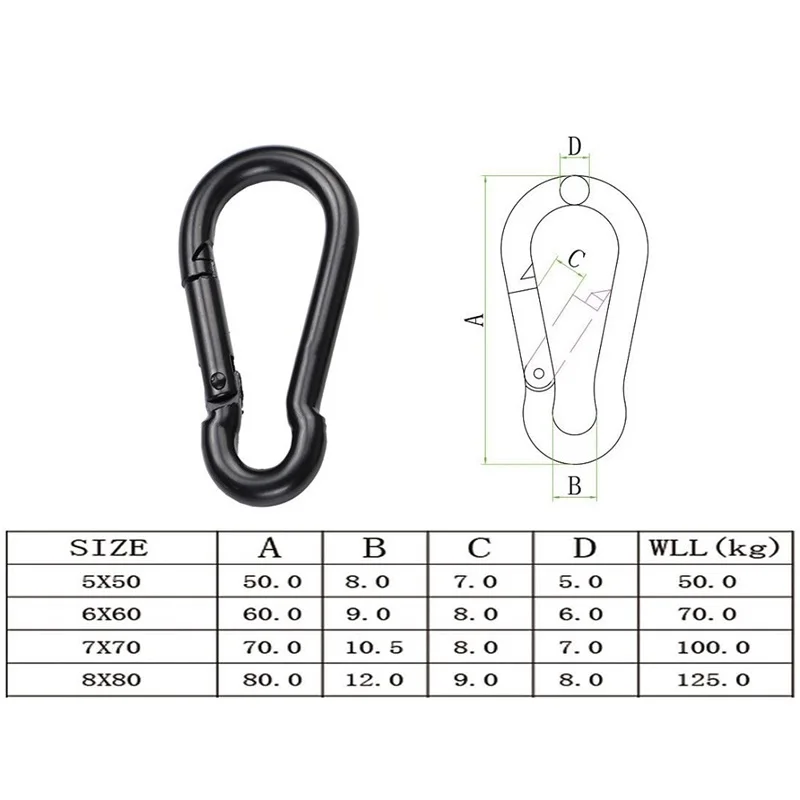 5 peças material de ferro eletroforese superfície preta mosquetão gancho de pressão 5mm 6mm 8mm