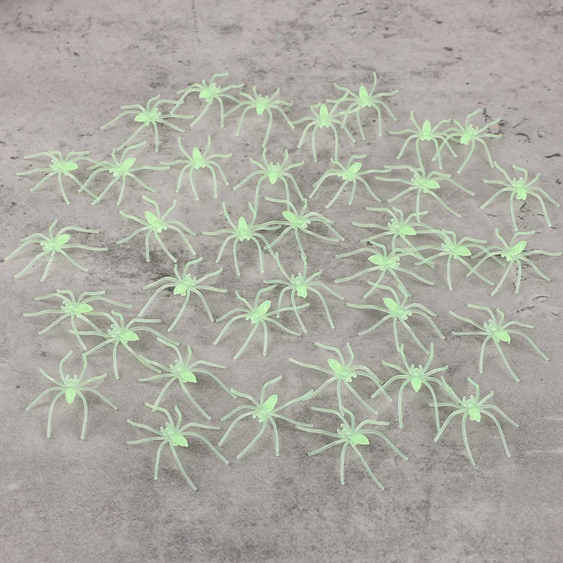 50/100 pçs aranha de halloween assustador luminoso brilho aranha para festa de halloween casa interior ao ar livre web decoração casa assombrada adereços