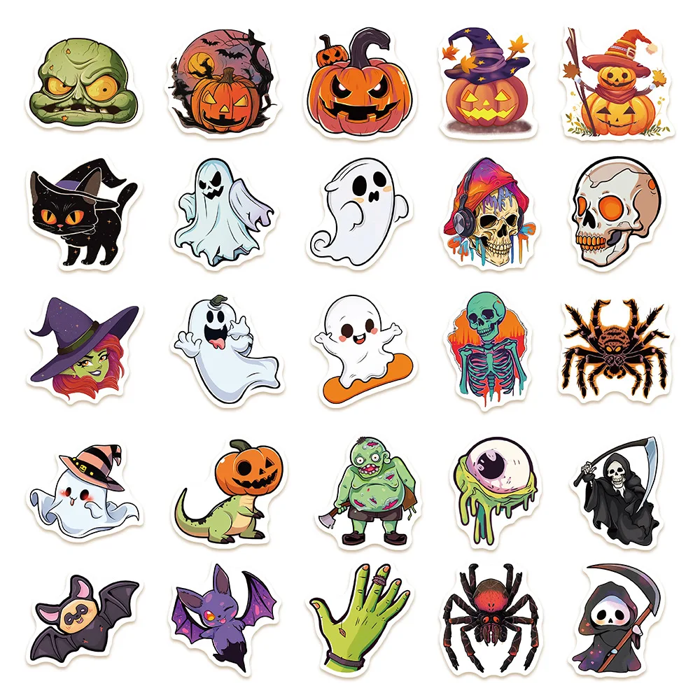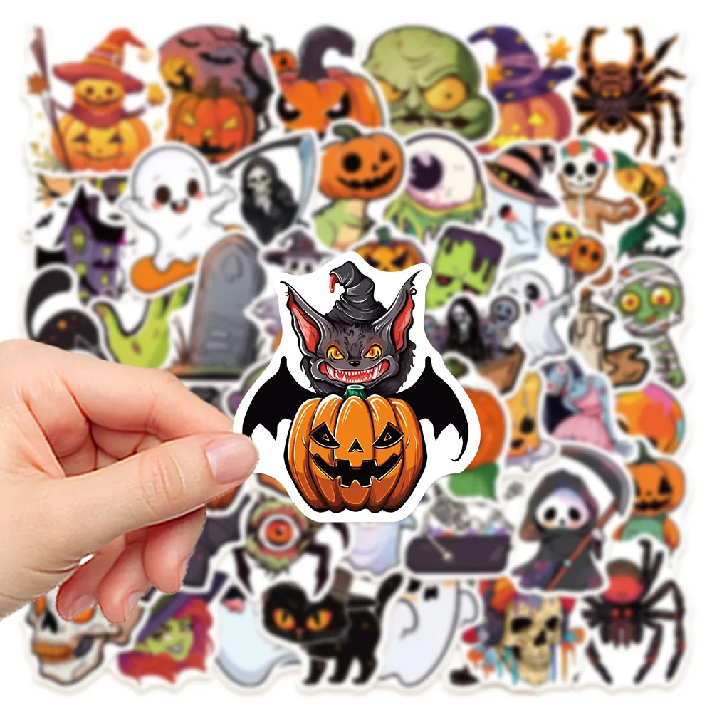 50 pçs terrorifier halloween abóbora graffiti adesivos à prova dwaterproof água para telefone bagagem garrafa de água skate decoração