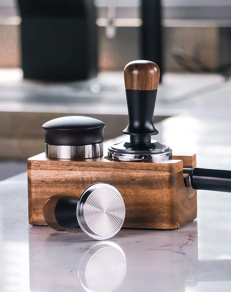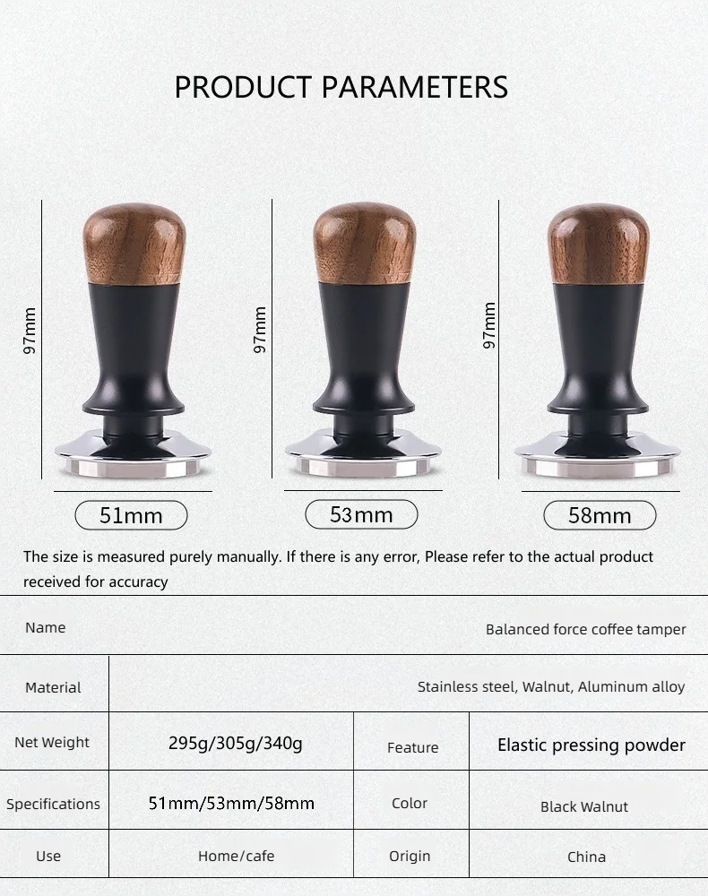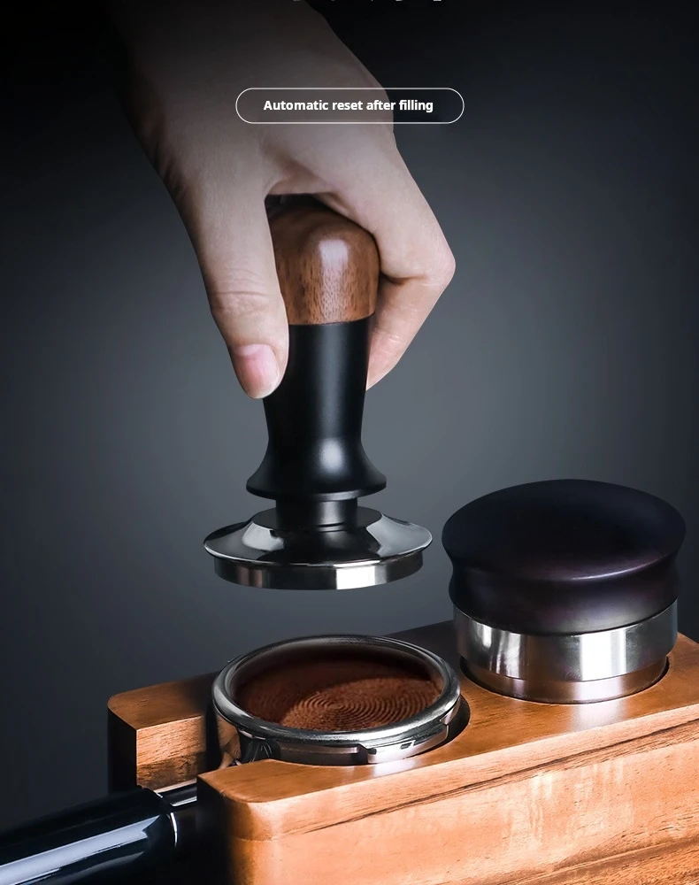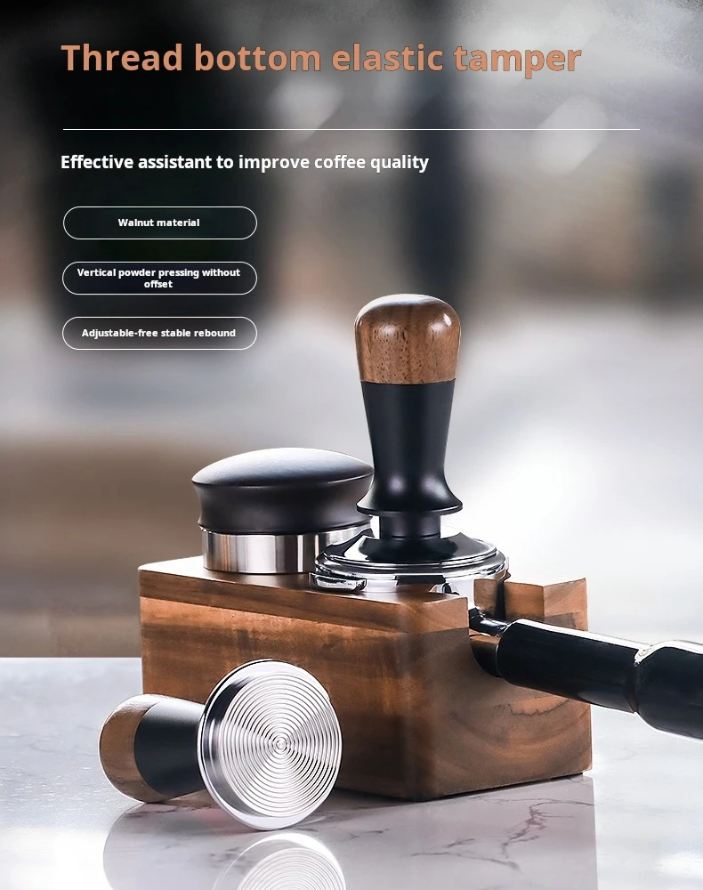 51/53/58mm calcadeira de café de madeira de nogueira calcadeira de café de aço inoxidável força constante elasticidade martelo de café acessórios de café expresso
