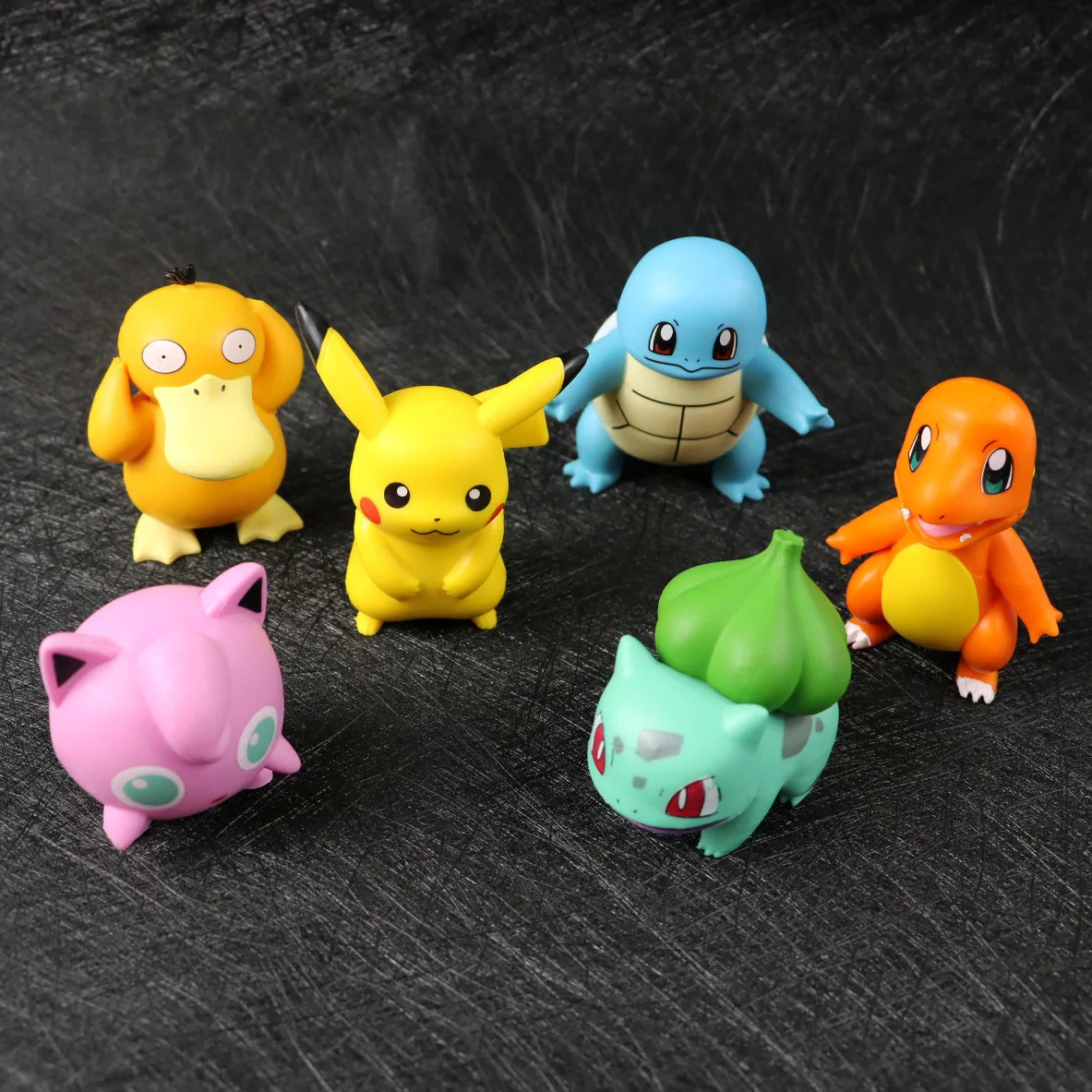 6 pçs pokemon figura de ação brinquedos pikachu psyduck squirtle jigglypuff miniatura modelo coleção adereços
