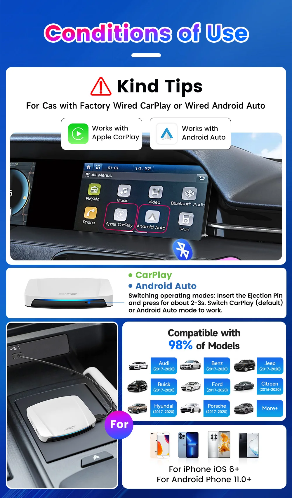 Compatible Car: Car with factory wired CarPlay/wired Android Auto