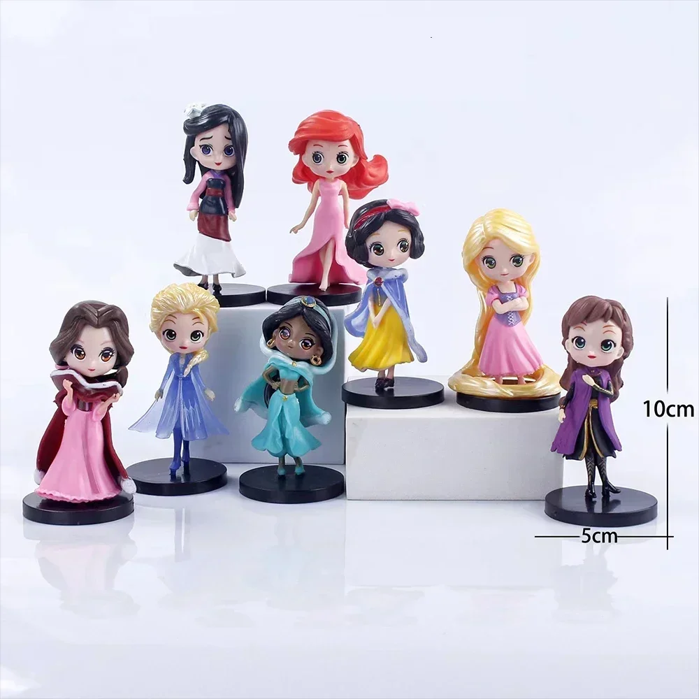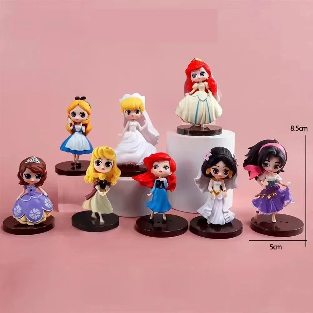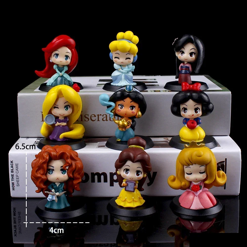 - > 8/9 pçs/set Disney Q Posket princesa figura Brinquedos Bonecas Tiana Branca de Neve Rapunzel Ariel Cinderela Belle Sereia Crianças Figuras Brinquedos