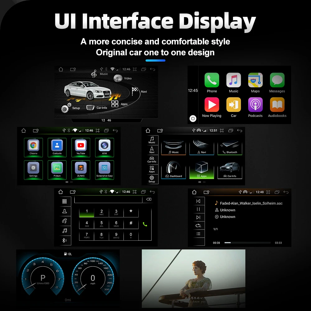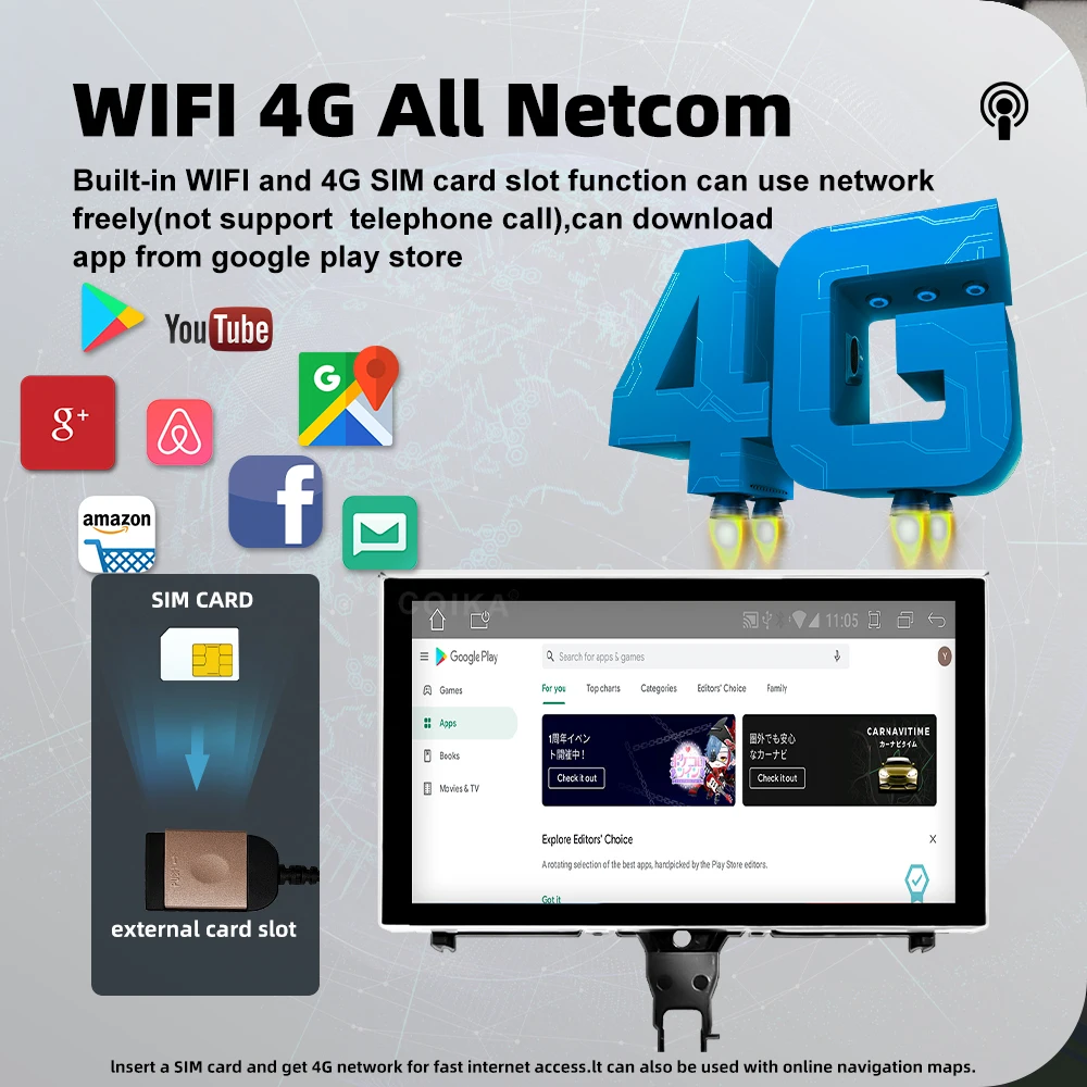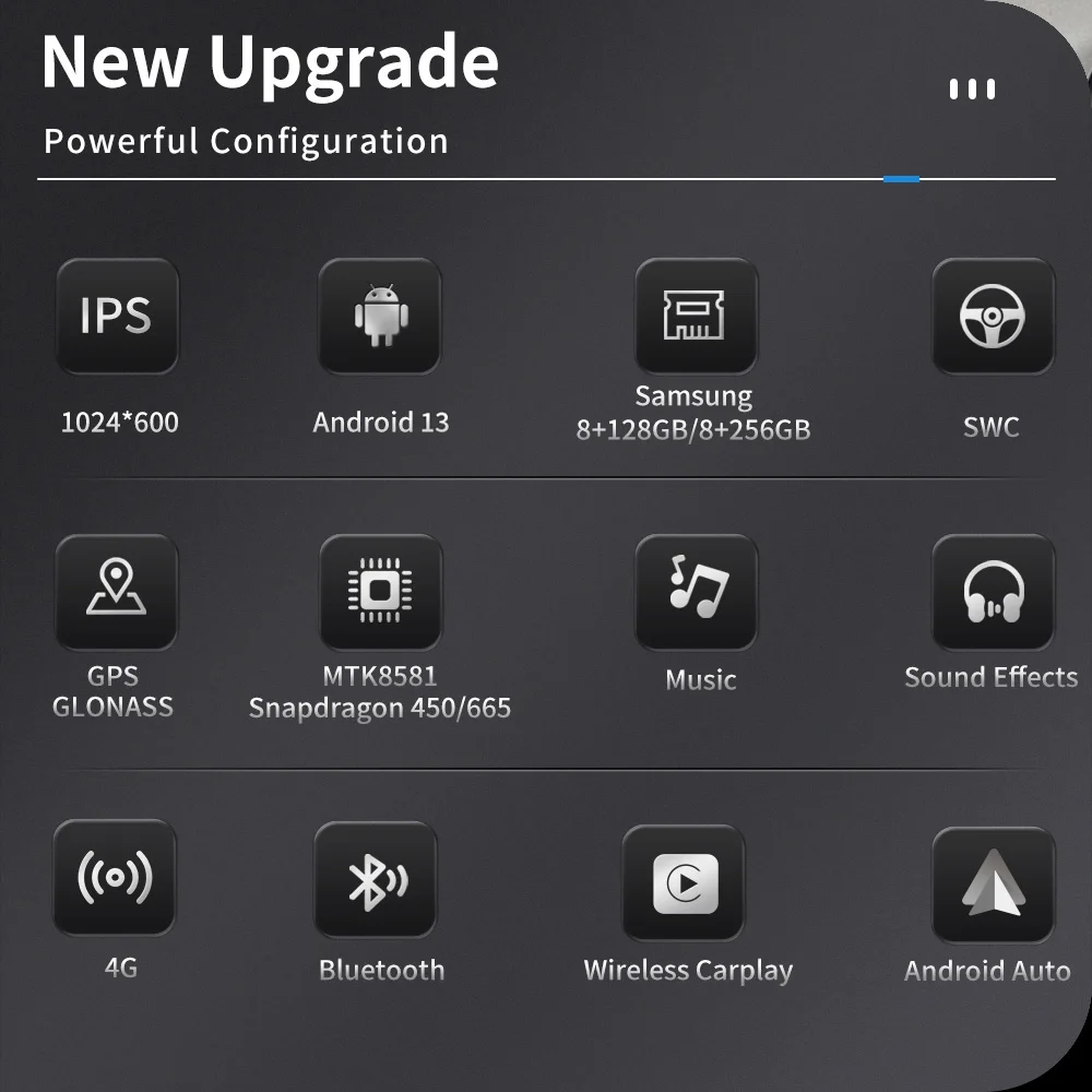 Function: 8 Core CPU Processor / GPS Navi / Google / WIFI / 4G SIM / BT / Wireless Carplay / Android Auto / USB / Music / 4K Video / Split Screen / Steering Wheel Control / Support Rear Camera / Keep Car Original Function / Multi-language / Fast Boot Screen