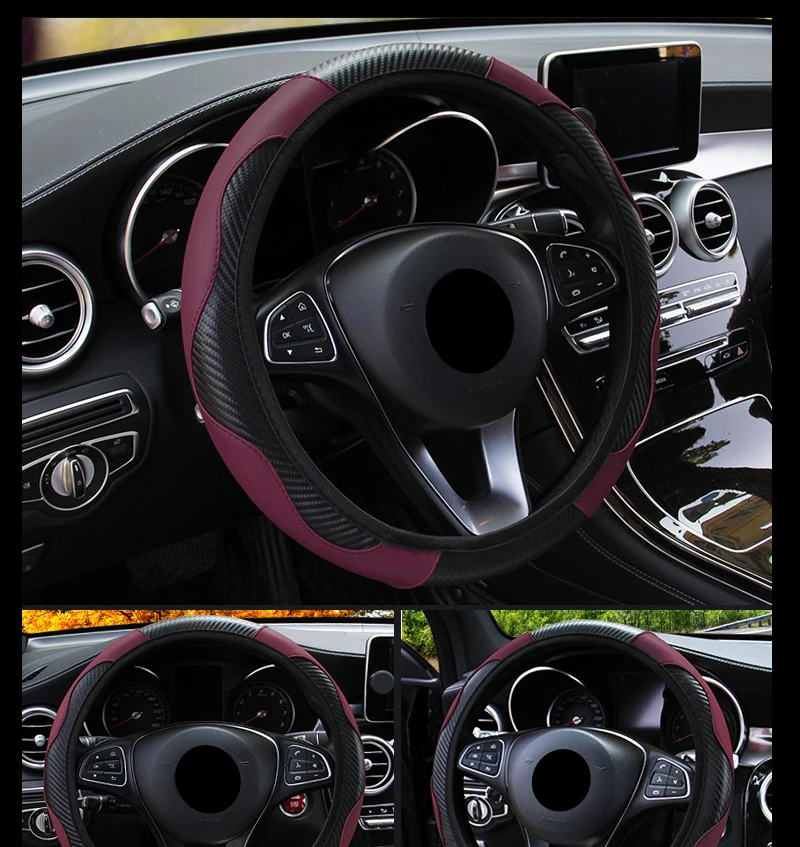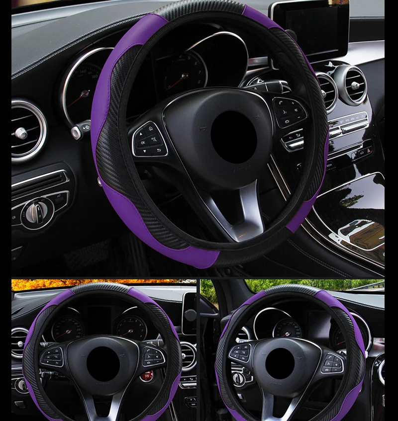 - > Acessórios do carro de fibra carbono couro do plutônio capa volante para hyundai i10 peugeot 2008 dacia sandero stepway