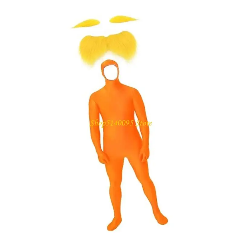 Fantasia clássica de tangerina: O bigode amarelo e as sobrancelhas combinadas com o macacão de tangerina tornam esta fantasia divertida perfeita para retratar um personagem de um livro de contendas;esta roupa divertida e adorável pode trazer alegrias para sua família e amigos, aumentando as atmosferas festivas.