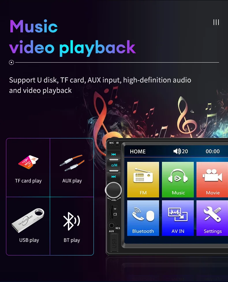 -Suporta cartão TF/MMC de grande capacidade até 32G (não incluído), driver USB, MP5 player