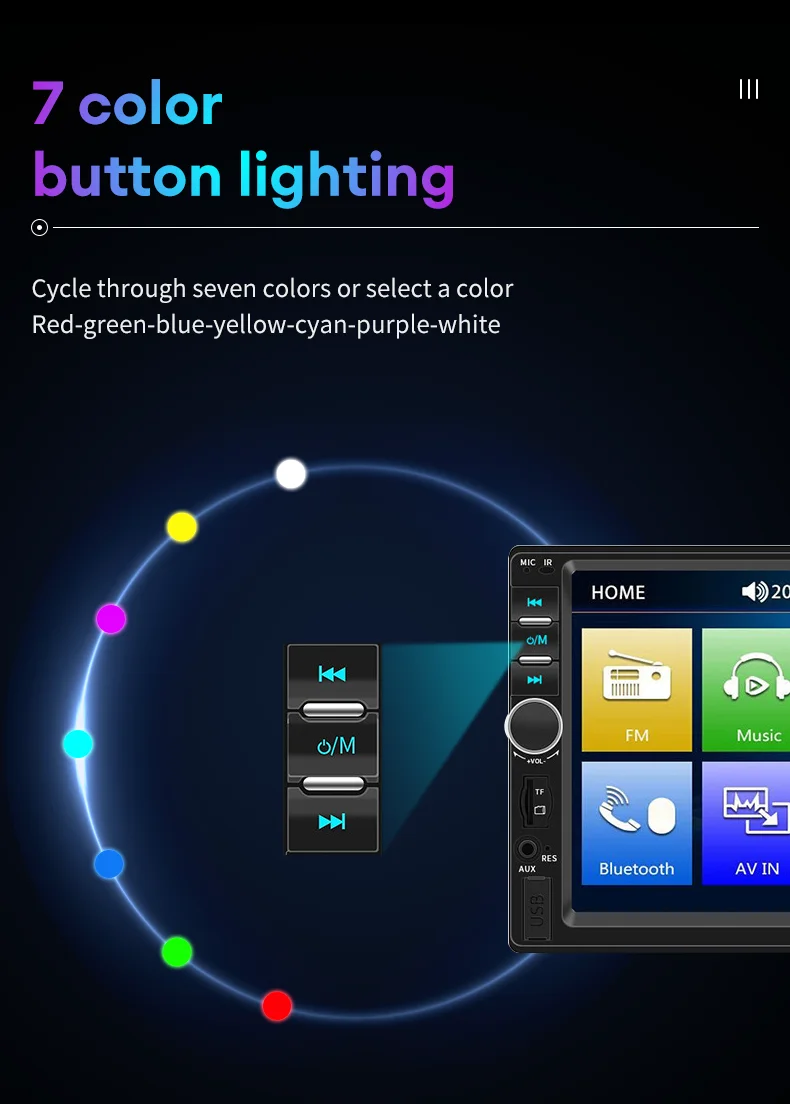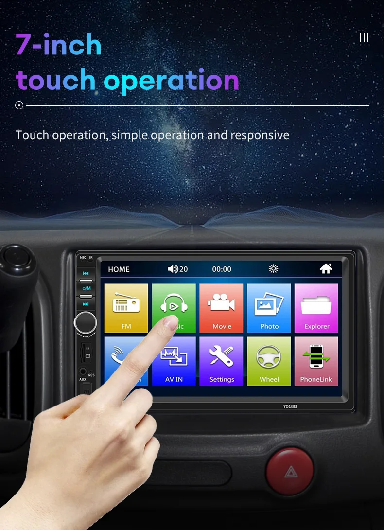 • Tela táctil de 7 polegadas:Desfrute de uma experiência de visualização nítida e imersiva com o ecrã tátil de 7 polegadas que fornece acesso fácil à sua mídia favorita.