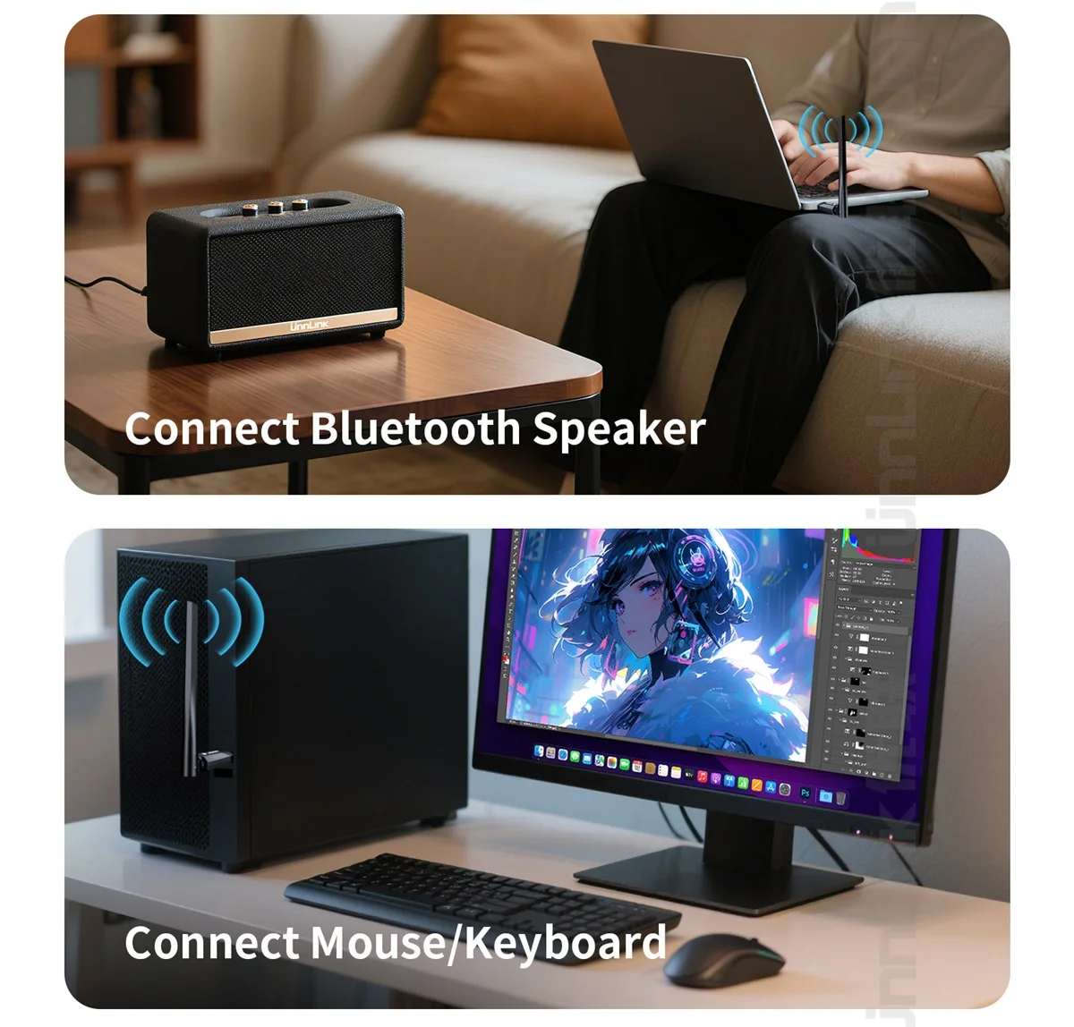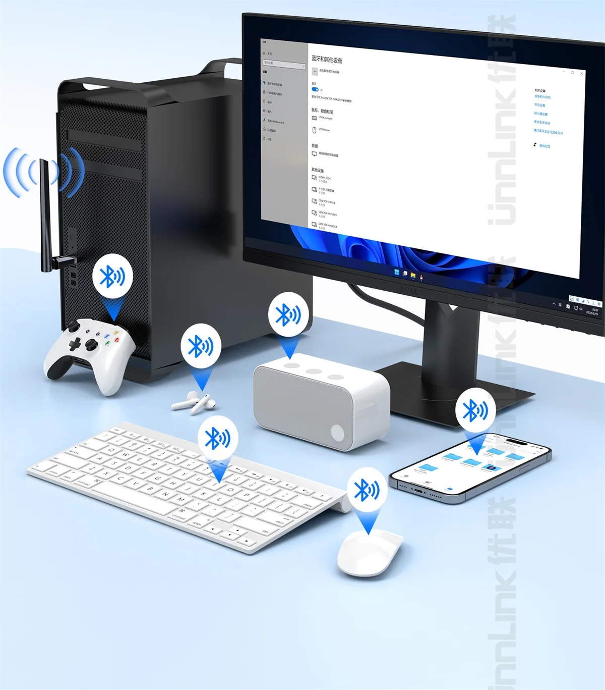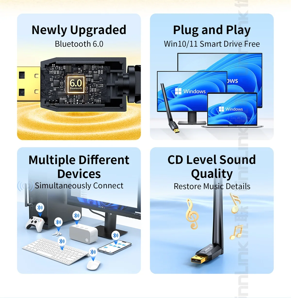 - > Adaptador Bluetooth USB Unnlink, Dongle Bluetooth 6.0 para PC Windows 10/11, Receptor Bluetooth para Ratos Teclado Fone de Ouvido Alto-falante