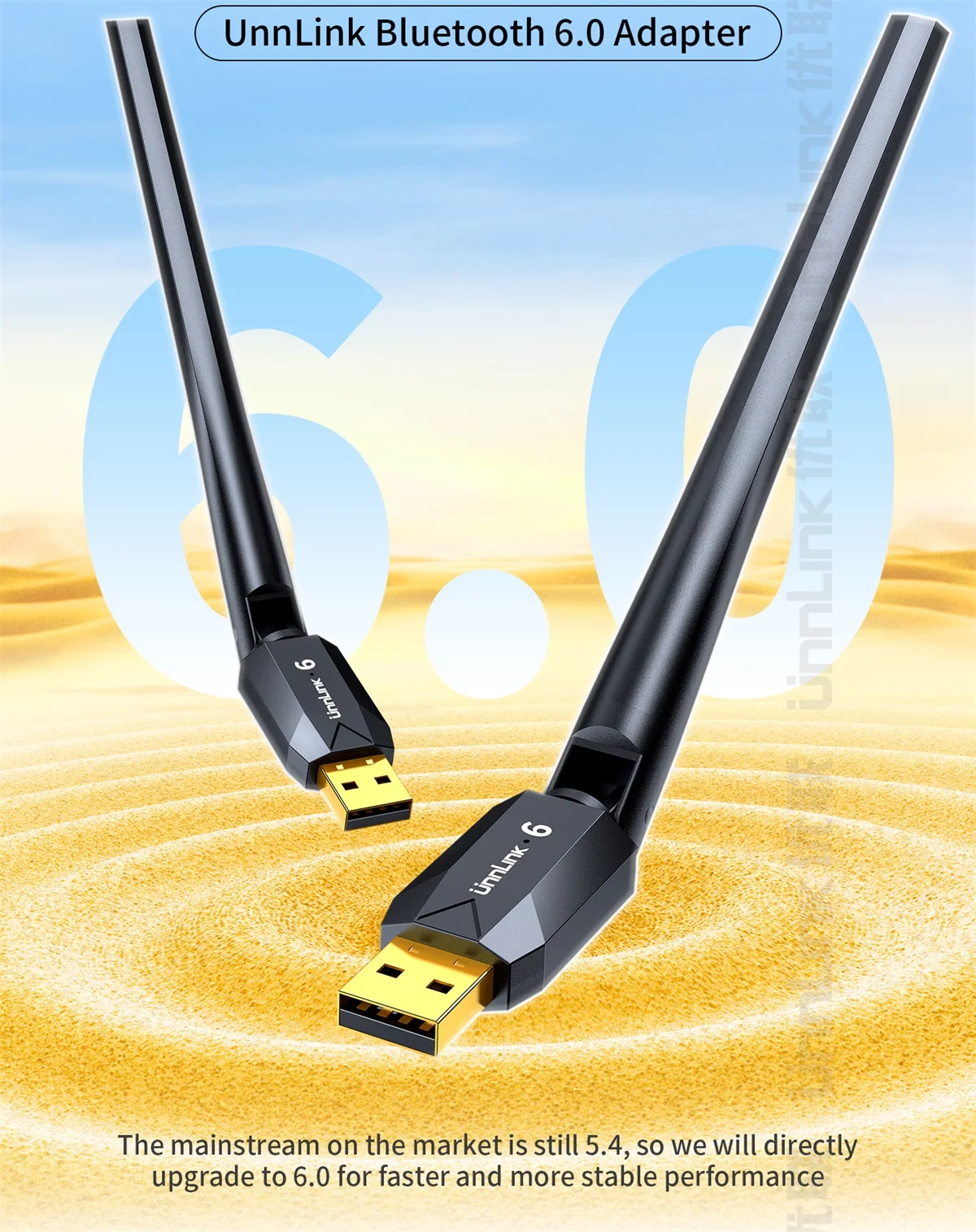 Adaptador Bluetooth USB Unnlink, Dongle Bluetooth 6.0 para PC Windows 10/11, Receptor Bluetooth para Ratos Teclado Fone de Ouvido Alto-falante