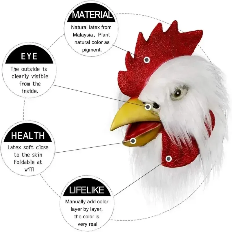 Adereços de galo branco máscara de frango louco dia dos tolos de abril fantasia festa cabeça de animal adereços cosplay acesso de carnaval