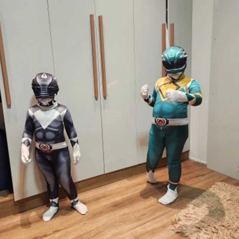 Fantasia power samurai rangers cosplay traje adulto crianças morfer poderoso morfin máscara de super-herói macacão zentai terno dia das bruxas