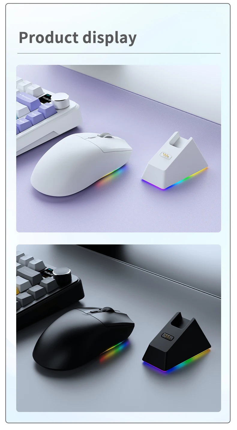 AJ139-V2-MC Tri-modo com fio/2,4 GHz /BT Mouse para jogos sem fio com base de carregamento magnético PAW3311 Chipset para jogos 12000DPI Max