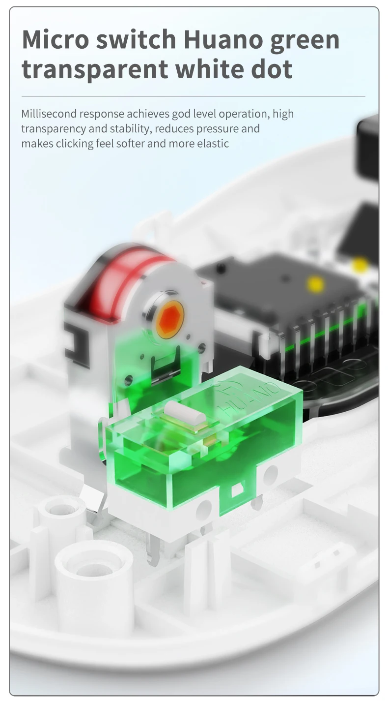 Alimentado por bateria, este mouse garante gerenciamento eficiente de energia, prolongando o tempo de reprodução entre cargas.
