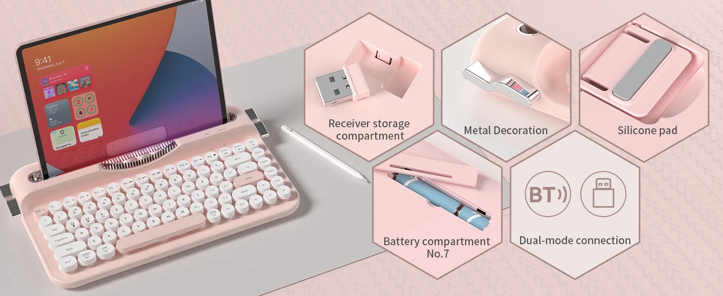- > Ajazz af84 multl-dispositivo teclado modo duplo 2.4g/bluetooth5.0 com slot para cartão suporte posição máquina de escrever teclado de membrana de escritório