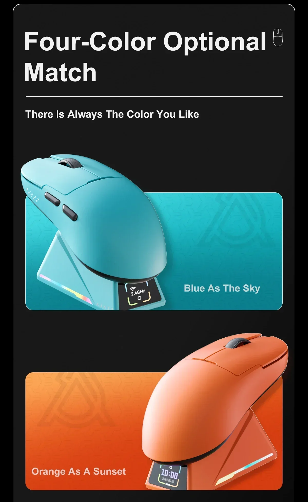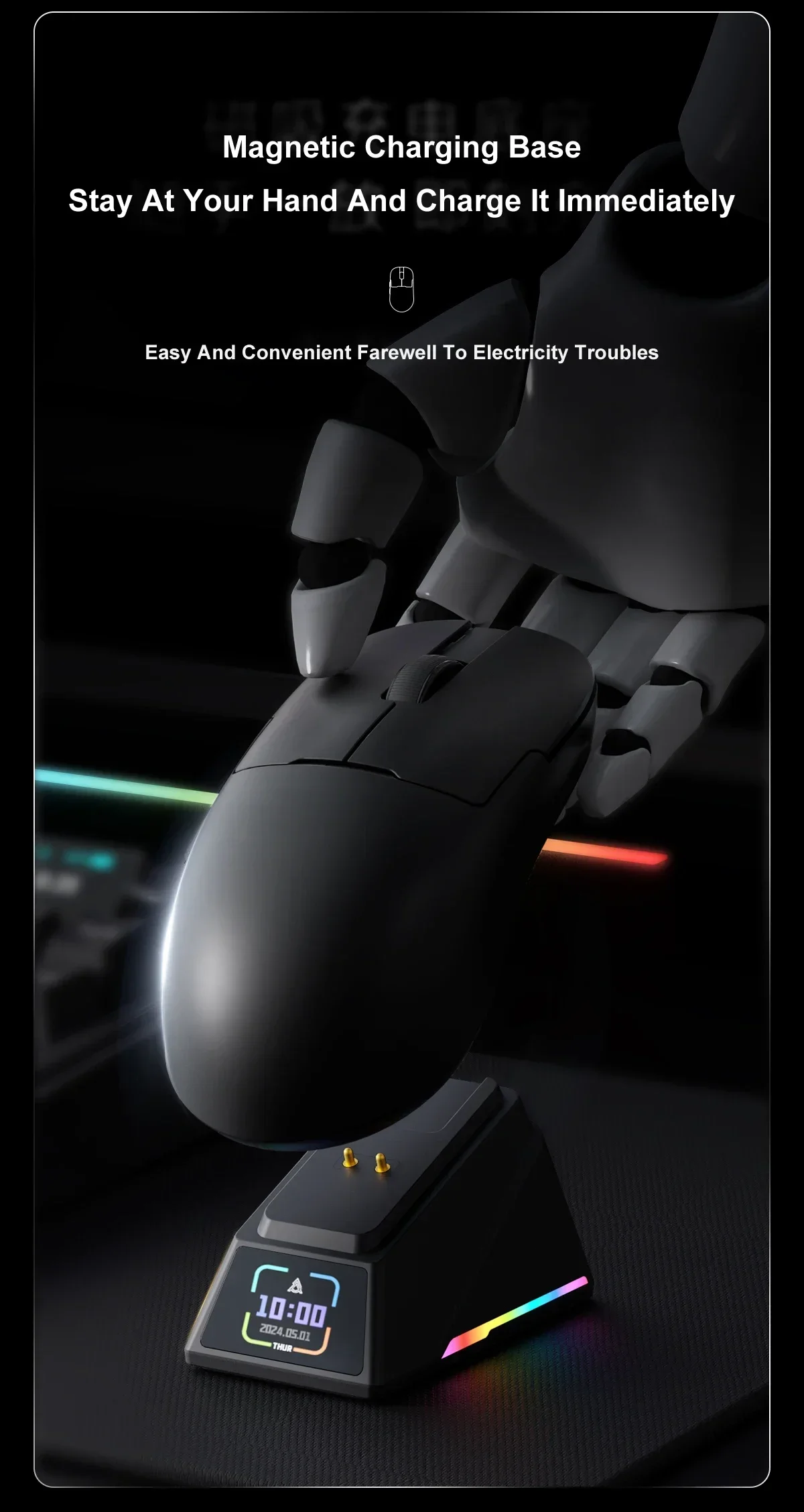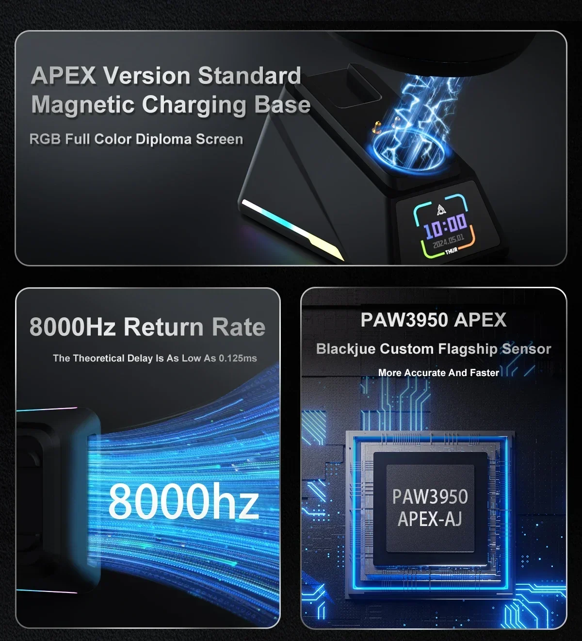 - > Ajazz aj159 apex 8k mouse para jogos sem fio de alto desempenho paw3395/3950 26k/30dpi rgb doca de carregamento magnético mouse para jogos