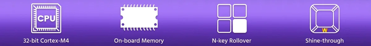 | CPU ARM Cortex-M4 O poderoso teclado para jogos com gatilho rápido Shine60 integrado da CPU oferece potência de processamento aprimorada com baixo consumo de energia.Possui calibração automática entre -20°C e 80°C, garantindo desempenho mais rápido e maior vida útil da bateria (somente para modelos sem fio). |