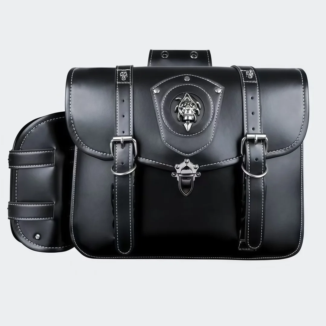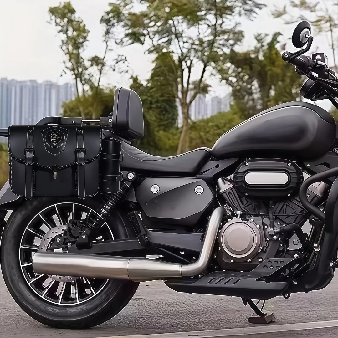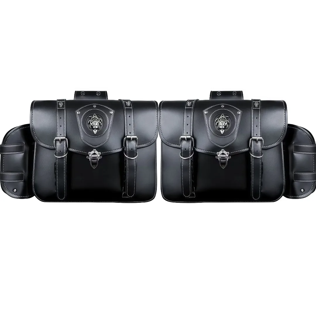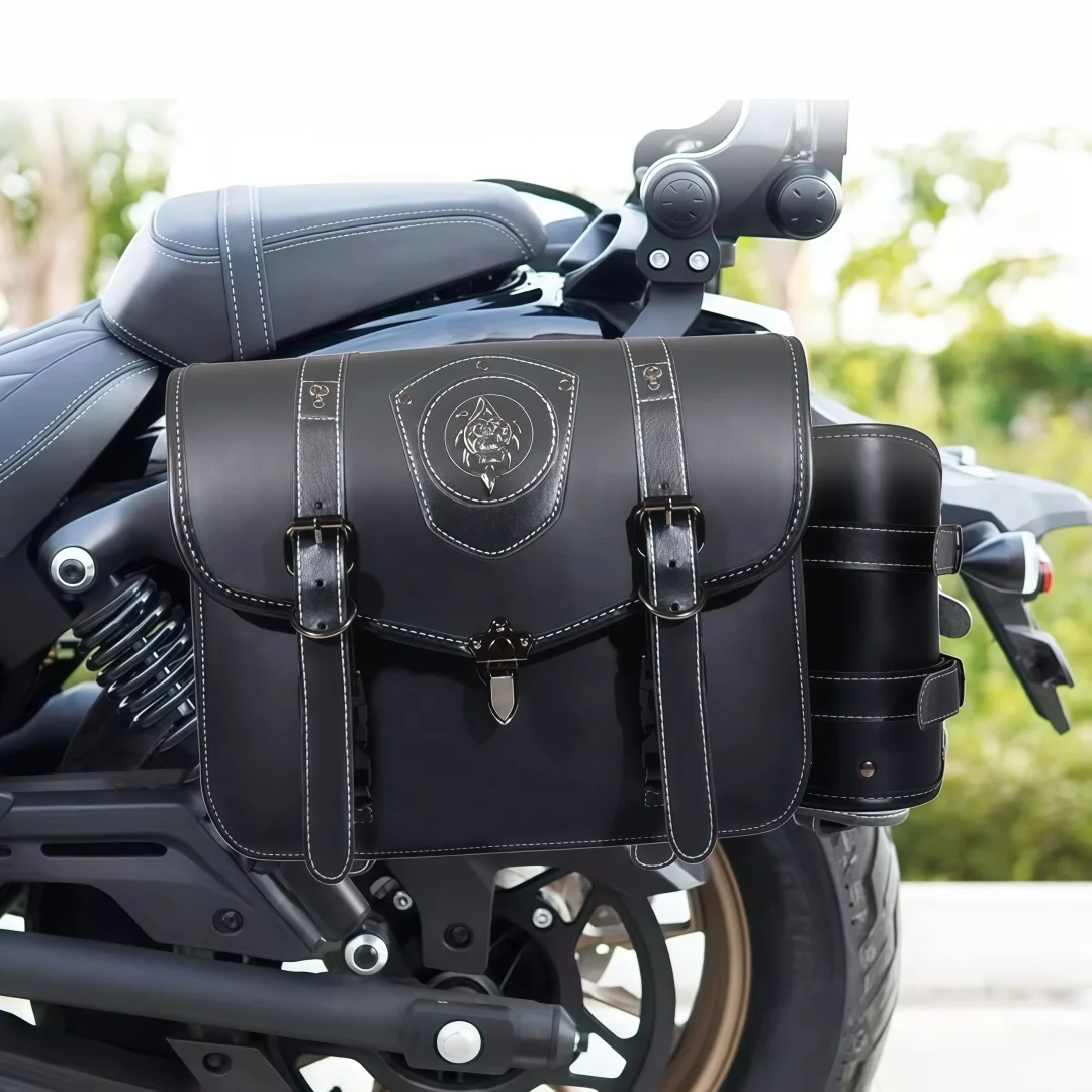 - > Alforjes retrô universais para motocicleta, alforjes para harley honda yamaha suzuki couro pu caveira monstro padrão cavaleiro