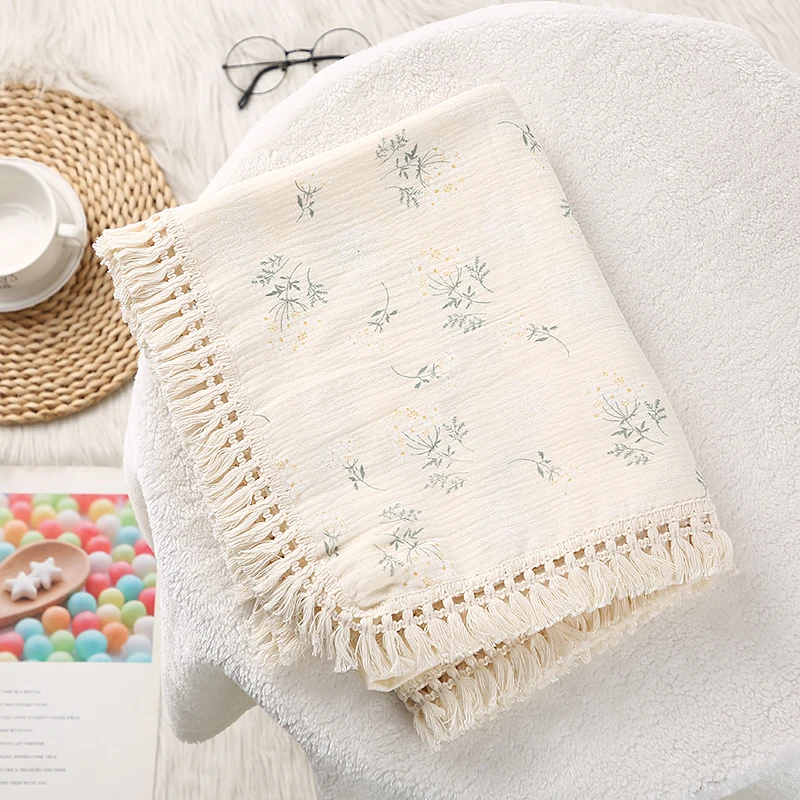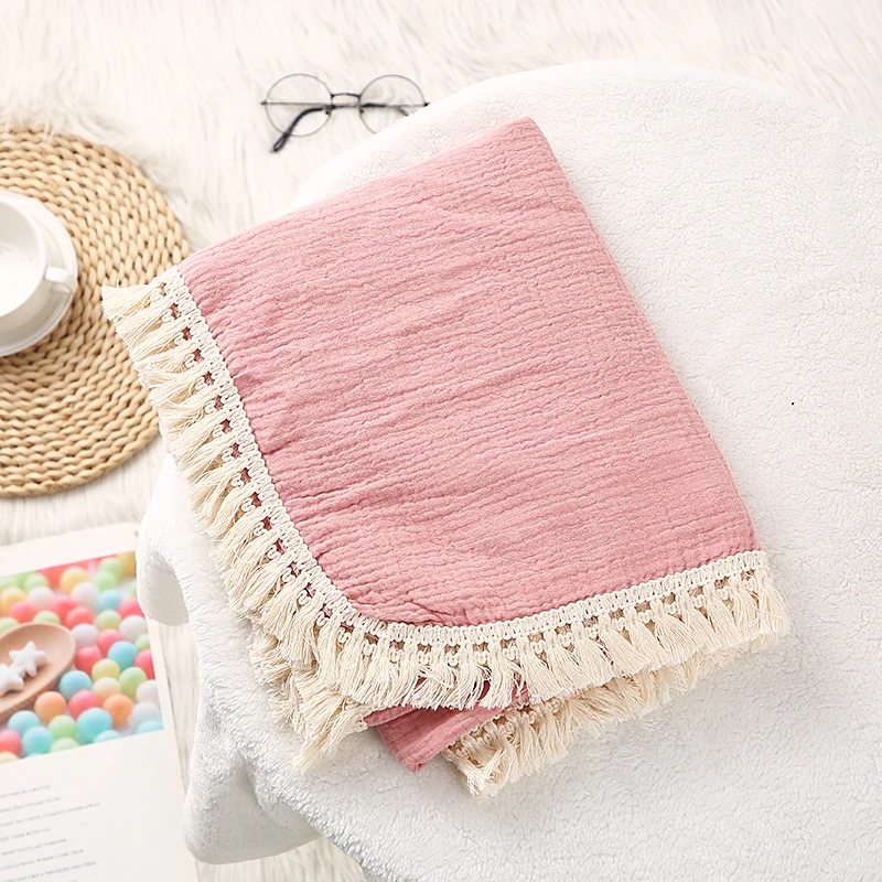 Algodão Musselina Swaddle Cobertores para Bebê Recém-nascido Borla Recebendo Cobertor New Born Swaddle Envoltório Infantil Dormir Quilt Bed Cover