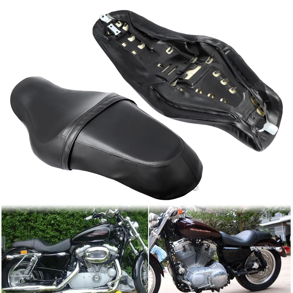 - > Almofada de assento de dois lugares de couro preto para motocicleta para Harley Sportster XL883 XL1200 48 Almofada de assento de motorista e passageiro traseiro