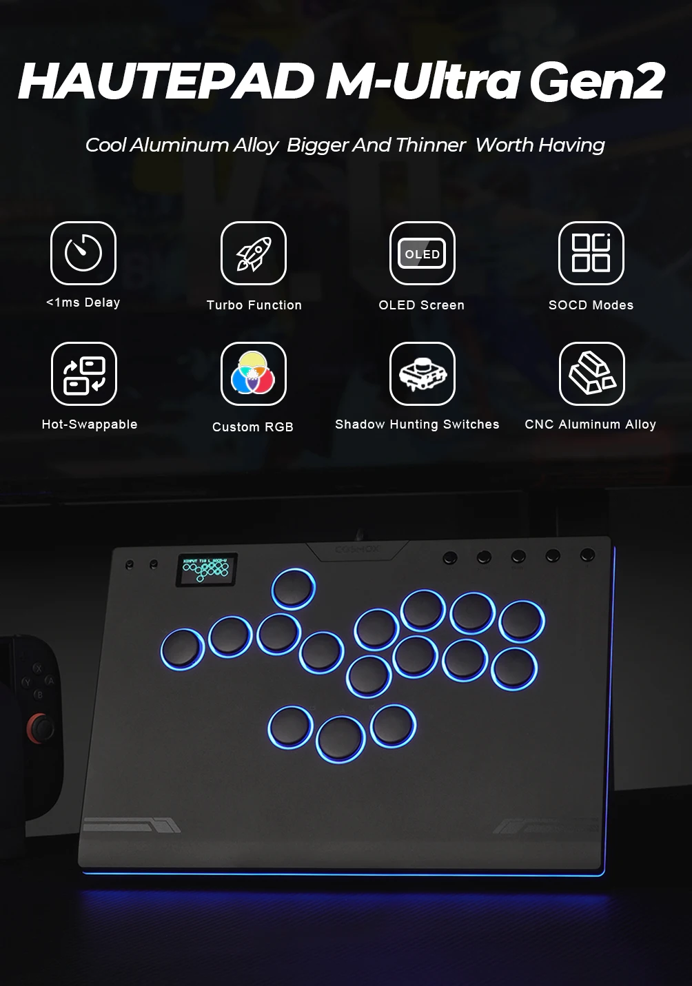 Alta42 m-ultra gen 2 liga de alumínio sem alavanca hitbox controlador para pc/ps4/ps5/steam stickless arcade stick controlador