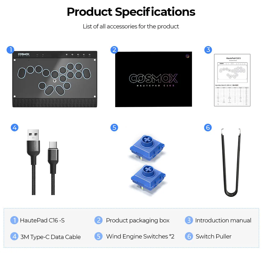 Alta42 magnético c16-s controlador hitbox sem alavanca controlador de arcade de todos os botões para pc ps4 ps5 switch1 switch2 steam stickless arcade stick