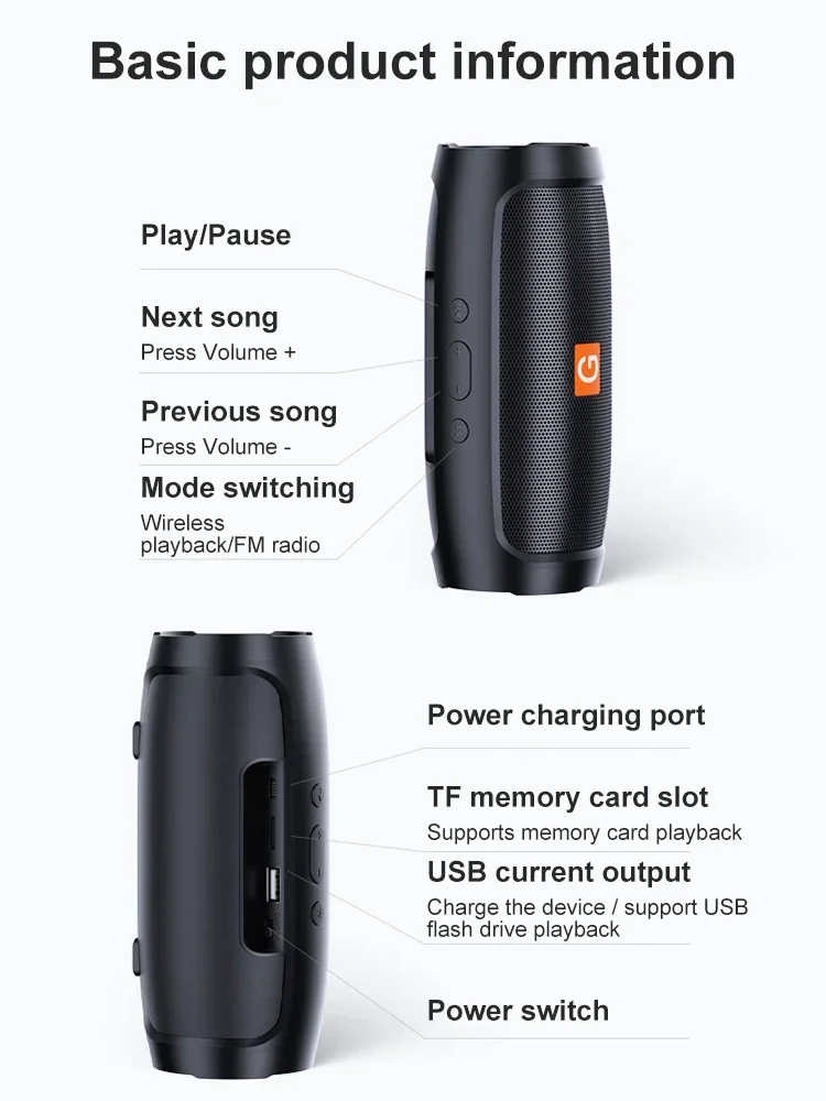 • Subwoofer portátil:Leve sua música para qualquer lugar com um subwoofer poderoso que oferece graves profundos.