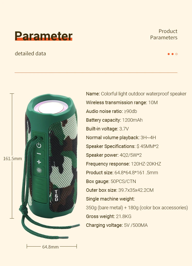 Altura [mm]: TG227 Portable Wireless Caixa De Som Bluetooth Speaker Music Sound Box