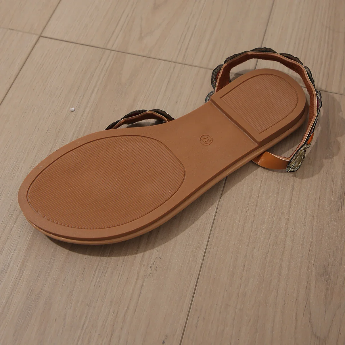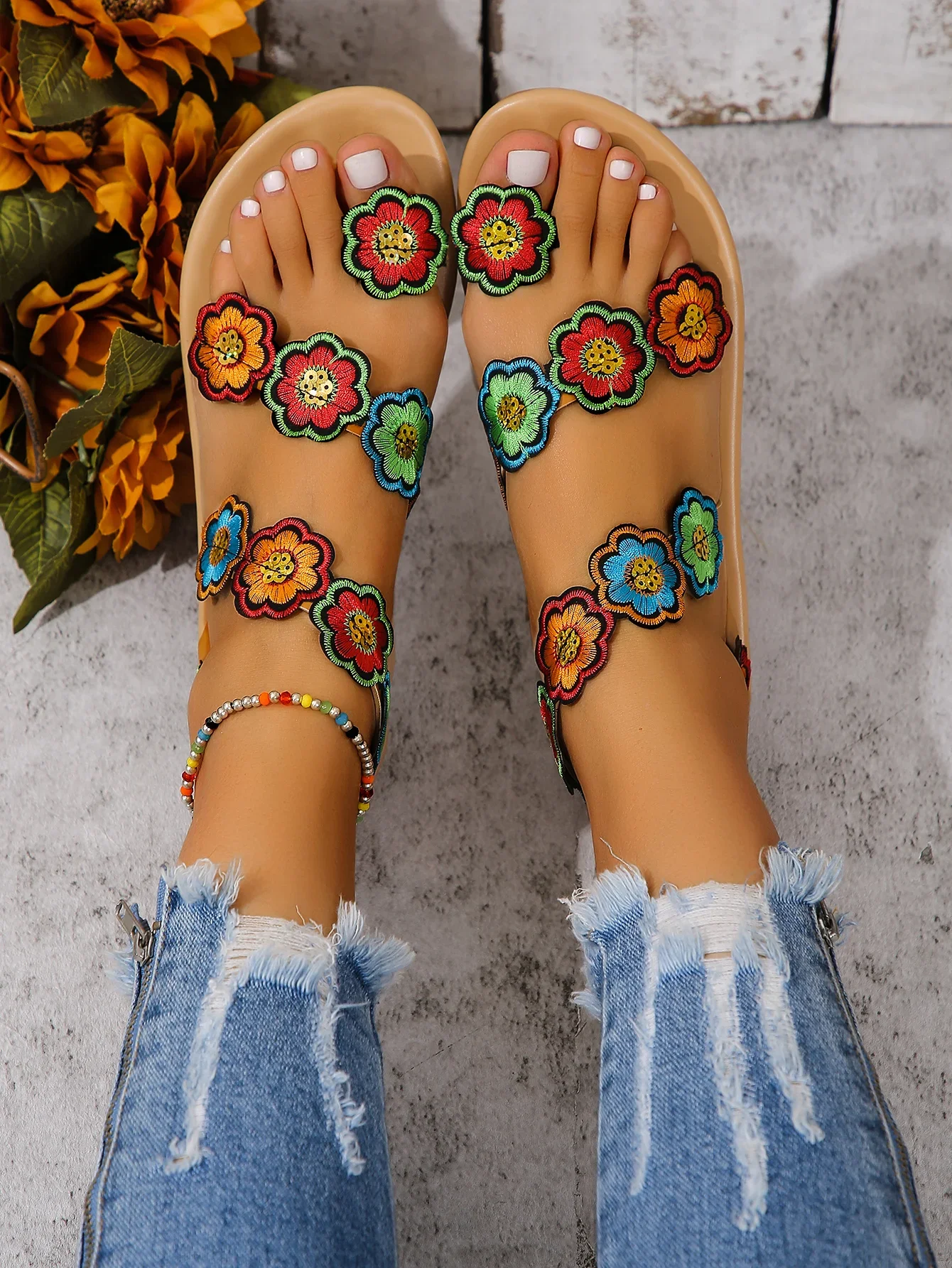 Amarelo bordado falso flor moda sandálias plana plus size 43 verão ao ar livre sapatos de praia viagem mãe sapatos