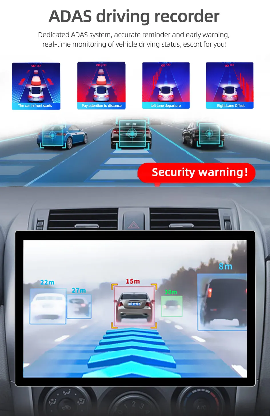 ADAS driving warning function, if you are too close to the vehicle in front or deviate from the current driving track, it will alarm and remind, making your driving safer!