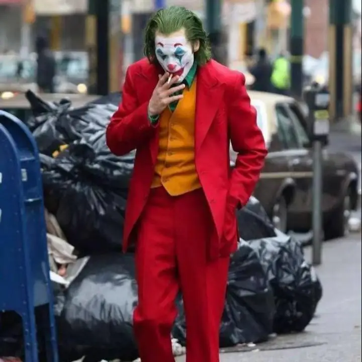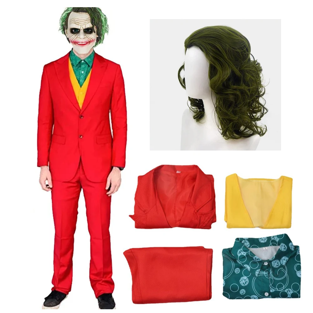 Anime Joaquin Phoenix Joker Cosplay Traje para Homens e Mulheres, Uniforme do Dia das Bruxas, Piada Filme, Perucas Palhaço Personagem, Cabelos