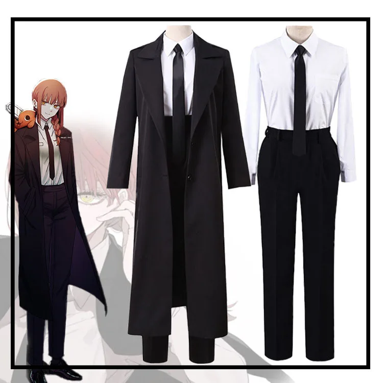Anime makima cosplay traje motosserra homem makima cosplay trajes peruca trench camisa gravata calças das mulheres dos homens ternos uniforme de halloween