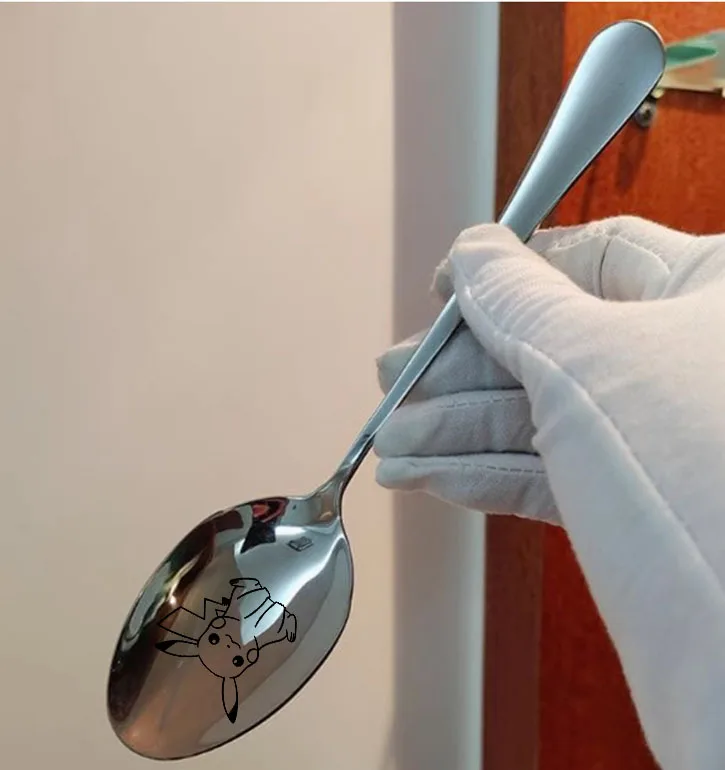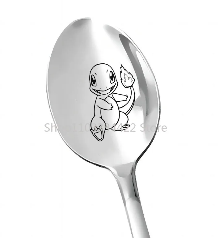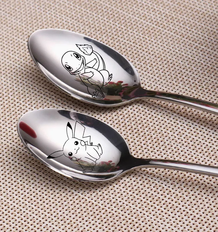 - > Anime pokemon pikachu crianças colher bonito bebê sopa concha de aço inoxidável comida em casa para crianças talheres colher presentes aniversário