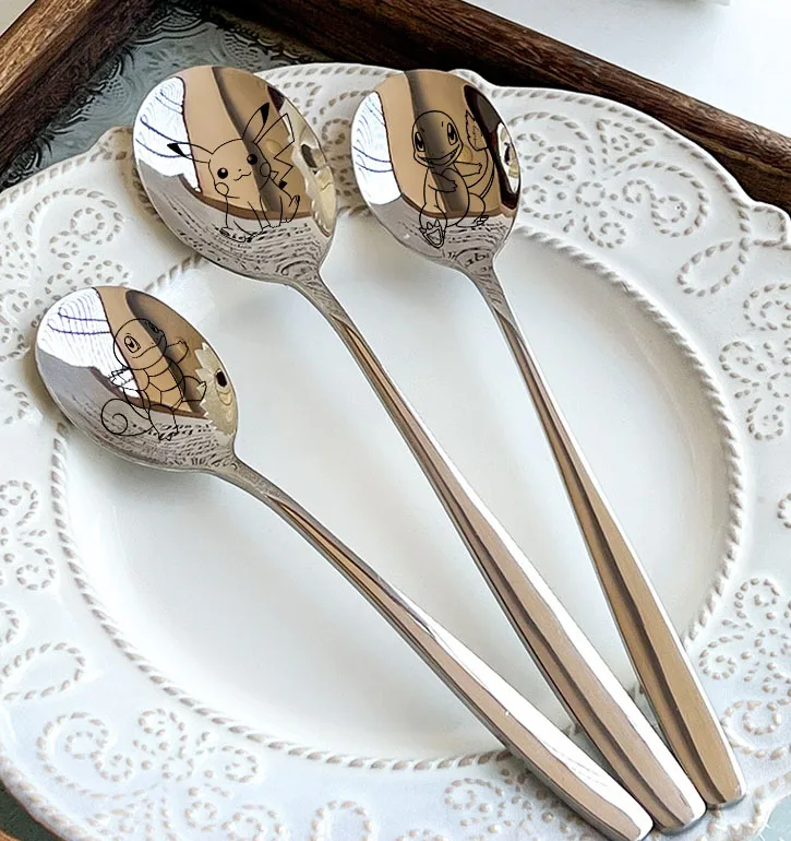 Anime pokemon pikachu crianças colher bonito bebê sopa concha de aço inoxidável comida em casa para crianças talheres colher presentes aniversário
