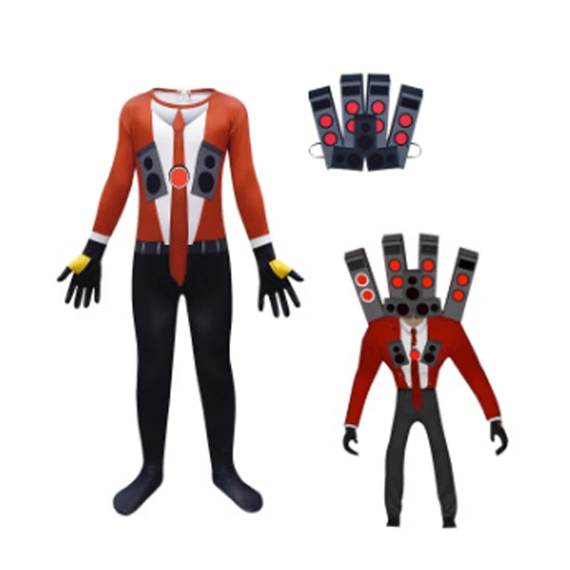Anime Skibidi Toilet Cosplay Costume para Adultos e Crianças, Audio Man, Câmera, TV, Macacão, Máscara, Conjunto Completo, Festa de Halloween, Criança